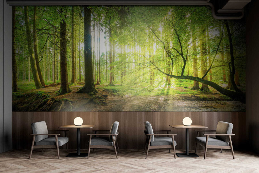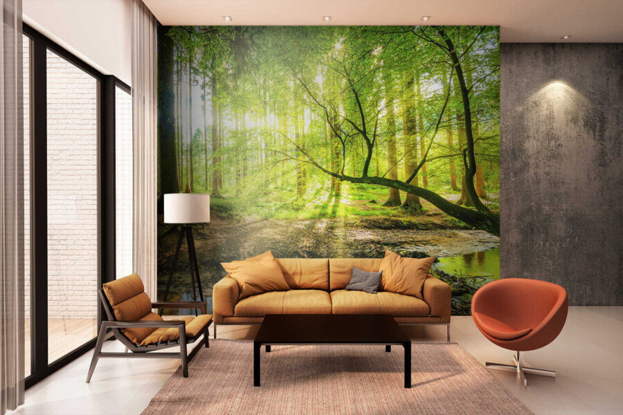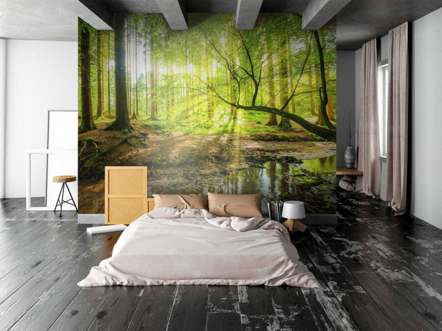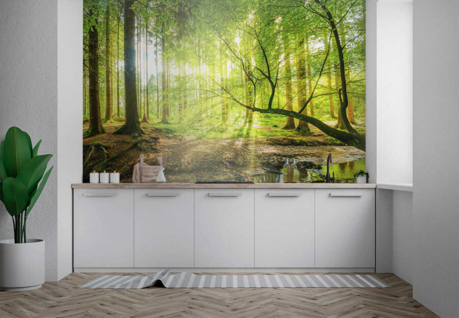 Pășiți într-o evadare de vis cu pictura murală “Sunlit Forest with Shimmering Stream”. Imaginați-vă că vă transformați spațiul într-un refugiu senin în pădure, unde lumina filtrează printre copacii înalți și unde șoaptele naturii umplu aerul. Imaginați-vă această pictură murală pe perete, aducând o felie din marea natură chiar în camera dvs. de zi. Este ca și cum ai avea o parte din magia campingului, fără insectele enervante. Fiecare privire la verdele vibrant și la curgerea blândă a pârâului ar putea inspira un vis cu ochii deschiși sau două. O pătură confortabilă și o carte bună? Cu siguranță o combinație câștigătoare!