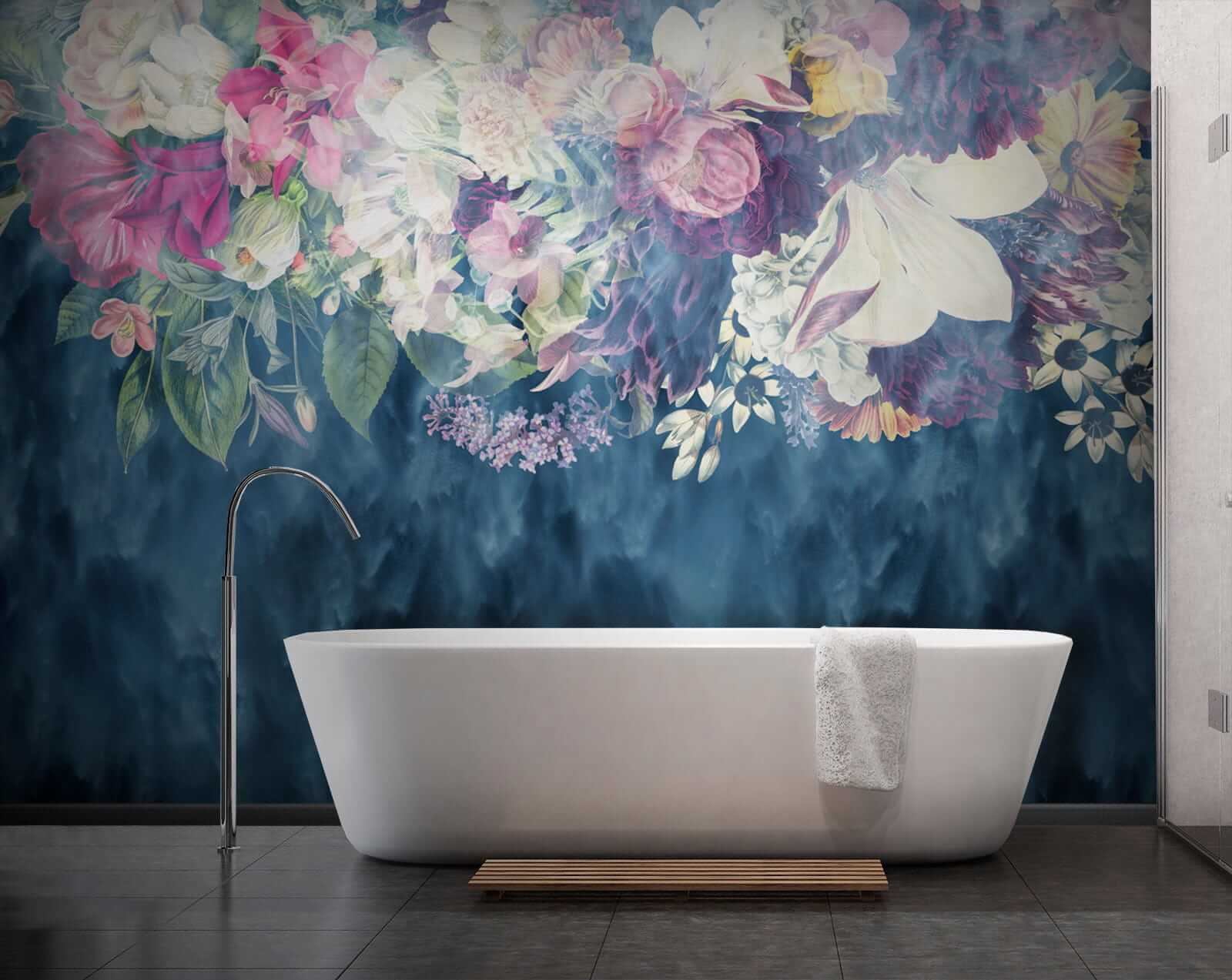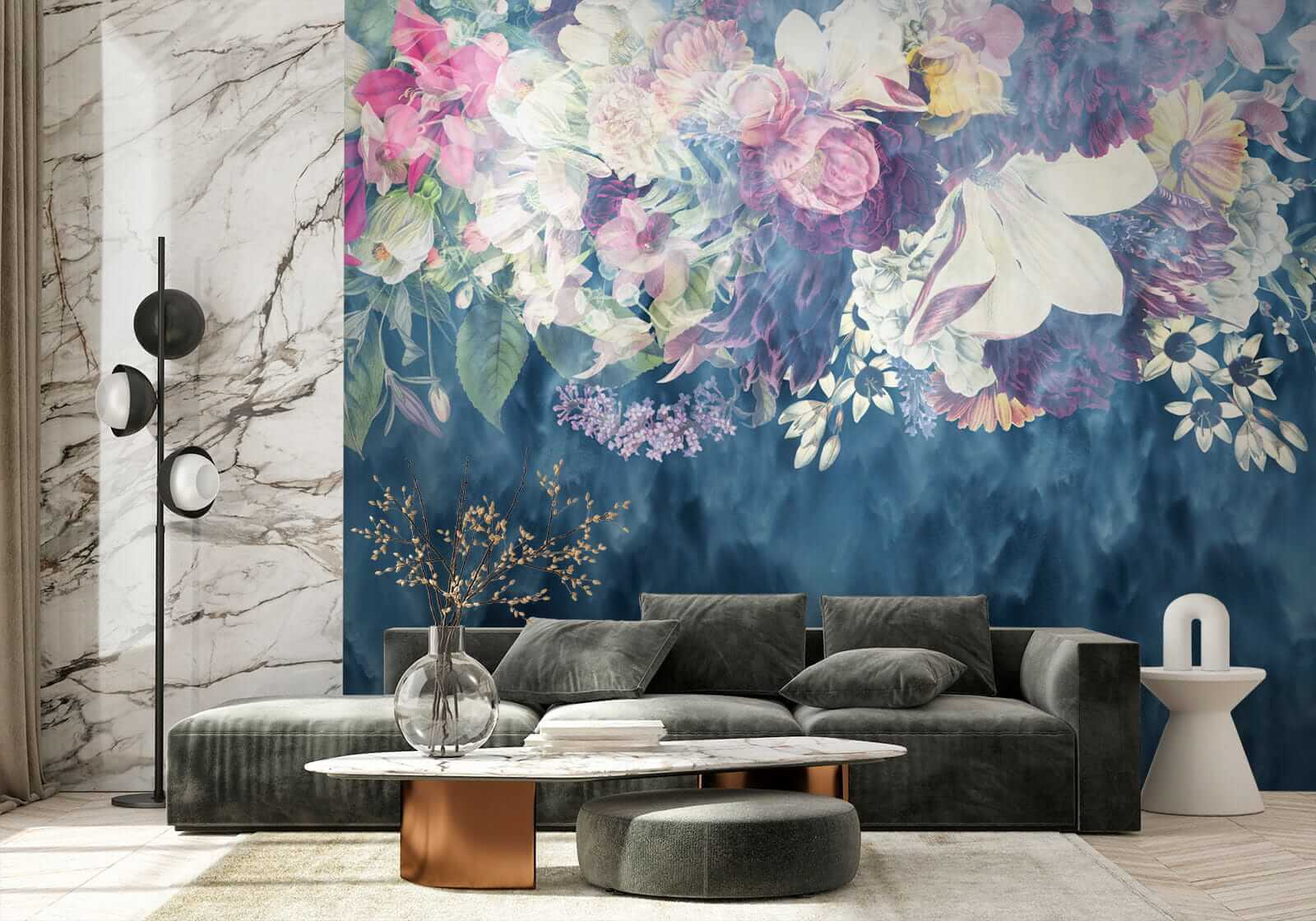 1 recenzie pentru Fototapet Tapițerie florală peste valuri albastre