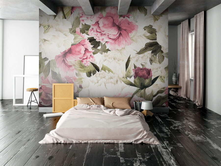 Transformați-vă spațiul cu acest fototapet încântător cu flori roz și albe. Este ca și cum ați aduce o grădină în interior, fără murdărie. Imaginați-vă că vă treziți înconjurați de aceste flori, care vă înveselesc diminețile și vă fac să vă simțiți ca în primăvară în fiecare zi. Nuantele delicate adaugă o notă de delicatețe, perfectă pentru un colț confortabil sau poate pentru acel perete care pare un pic prea singuratic. Prietenii vă vor complimenta și vă vor întreba de unde îl puteți cumpăra – este un subiect de conversație garantat. În plus, cine nu și-ar dori să fie înconjurat de atâta frumusețe? Aveți însă grijă, s-ar putea ca celelalte pereți să devină un pic geloși!