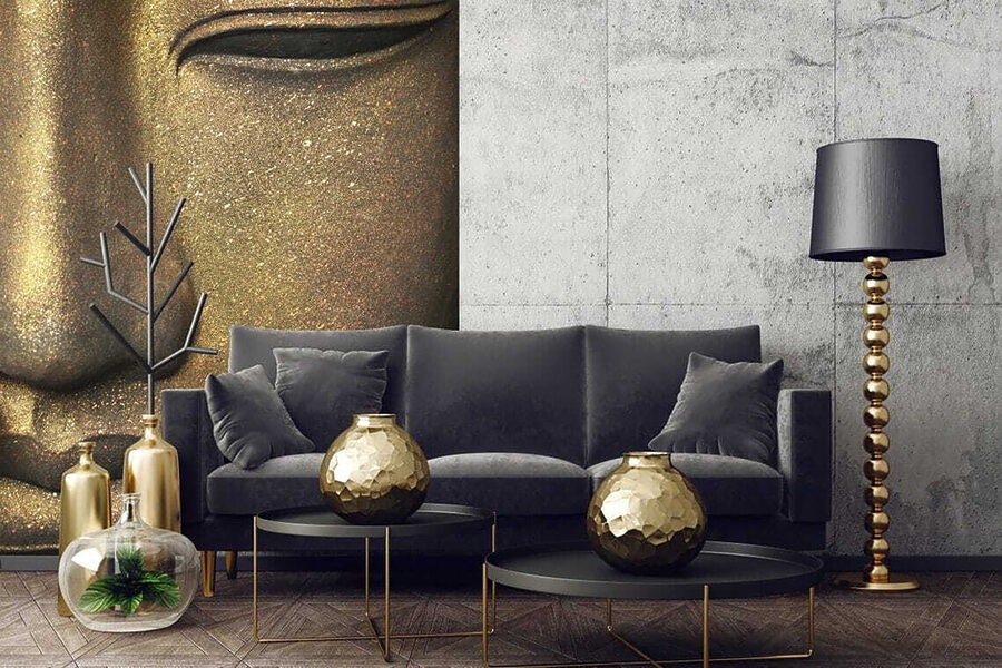Transformați orice spațiu cu vibrațiile liniștitoare ale acestei picturi murale care prezintă chipul senin al unei statui Buddha. Imaginați-vă că intrați în camera dvs. și sunteți întâmpinați de o expresie care vă șoptește liniște la ureche. Este ca și cum ai avea un maestru zen personal pe perete, care îți amintește mereu să respiri adânc.
