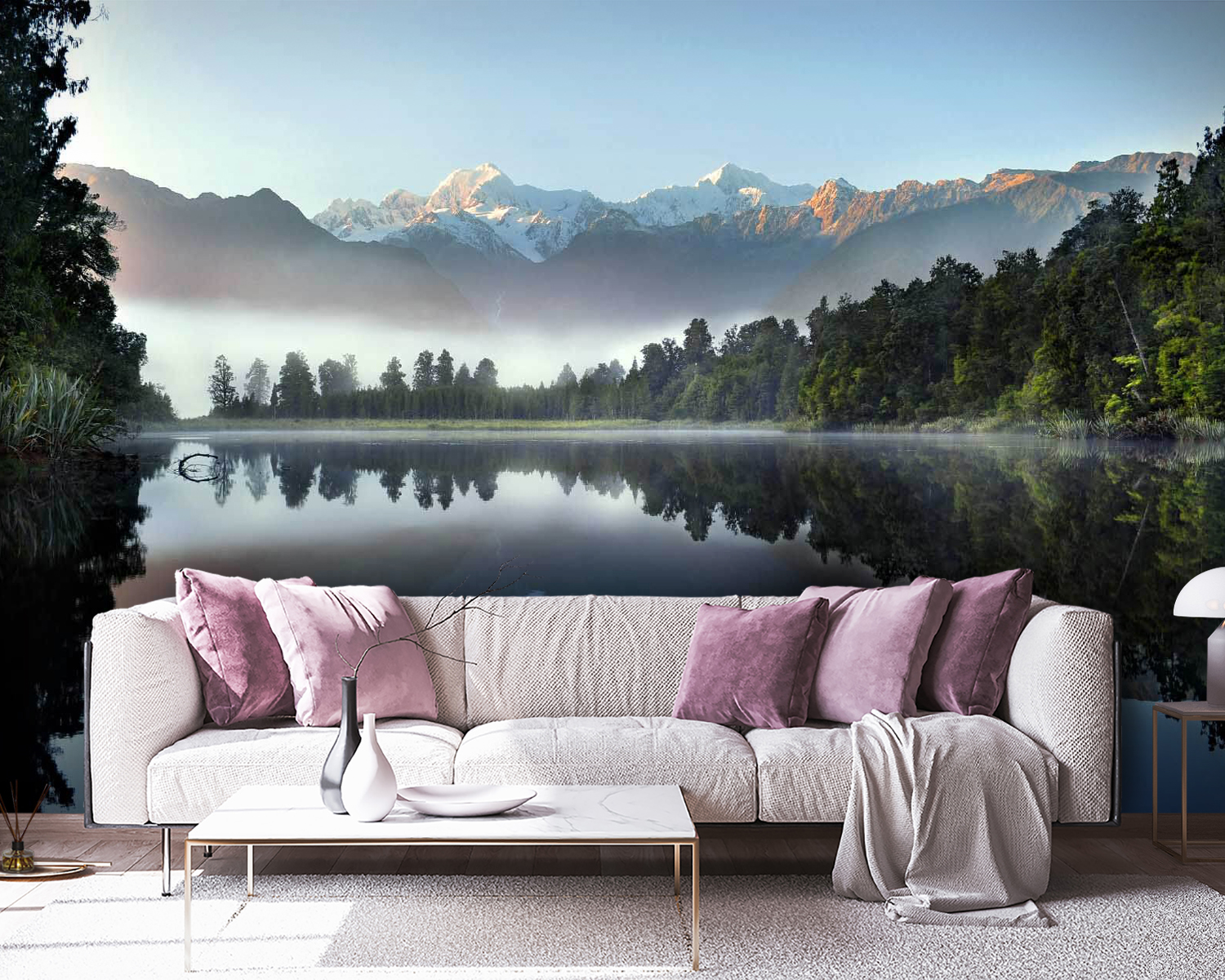 Imagine stepping into a tranquil lakeside escape, all without leaving home. This wall mural brings the serene beauty of nature to life with a stunning reflection of trees and majestic mountains. Picture yourself sipping coffee, blissfully transported to a peaceful morning by the water. The vibrant hues dance gently in the light, making even Monday feel like a vacation. It’s like nature’s calling you, whispering sweet nothings about relaxation and fresh air. Whether it’s in a living room or a cozy nook, this mural invites warmth and a touch of wild beauty into any space. Who knew walls could be so refreshing?