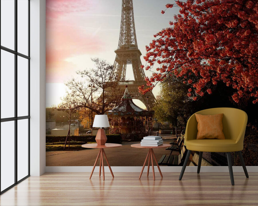 Transformați orice perete într-o escapadă liniștită cu acest „Wall Murals Park with Benches and a Tower” (Fototapet cu parc, bănci și turn). Imaginați-vă: intrați în camera dvs. și aveți în fața ochilor o scenă primitoare dintr-un parc – o plimbare după-amiaza sub copaci înfloriți, cu Turnul Eiffel care se zărește printre ramuri ca un vechi prieten. Culorile delicate creează o atmosferă liniștită, perfectă pentru relaxare după o zi lungă sau pentru a inspira creativitatea într-o dimineață leneșă.
