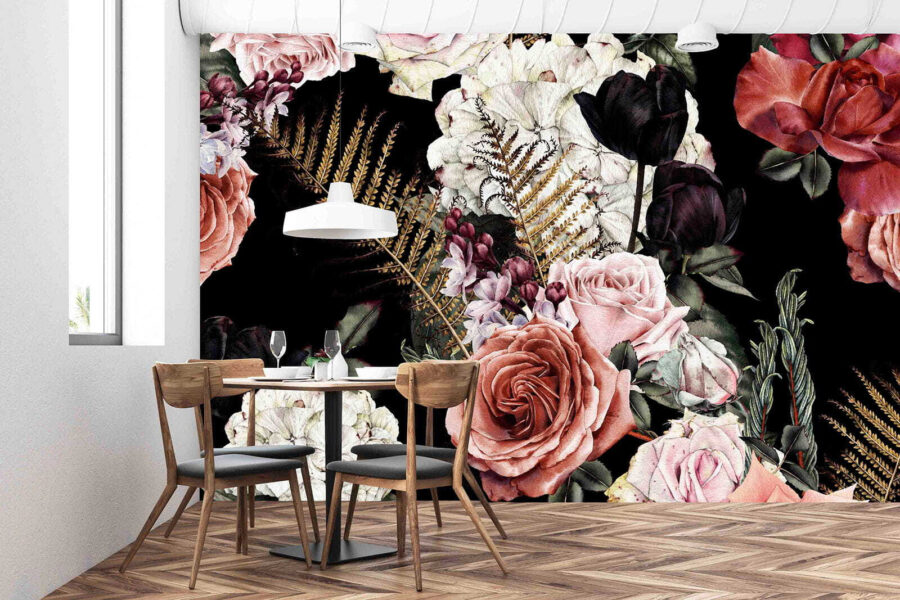 Transformați orice perete într-un sanctuar înflorit cu acest mural floral uimitor. Imaginați-vă trandafiri vibranți în nuanțe delicate pe un fundal adânc – ca un confetti al naturii pentru casa dvs. Știi, este uimitor cum un singur perete poate da viață unei camere, nu-i așa? Imaginați-vă cum vă sorbiți cafeaua de dimineață și vă simțiți inspirați de aceste flori minunate. Prietenii s-ar putea chiar să facă o dublă privire, convinși că ți-ai transformat spațiul într-o grădină confortabilă! Este o modalitate perfectă de a adăuga un strop de natură în interior, fără a mai fi nevoie de udare. Deci, de ce să nu lăsați aceste flori să înveselească chiar și cea mai plictisitoare zi?