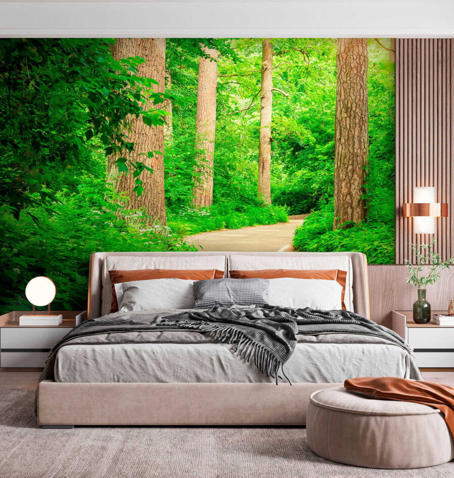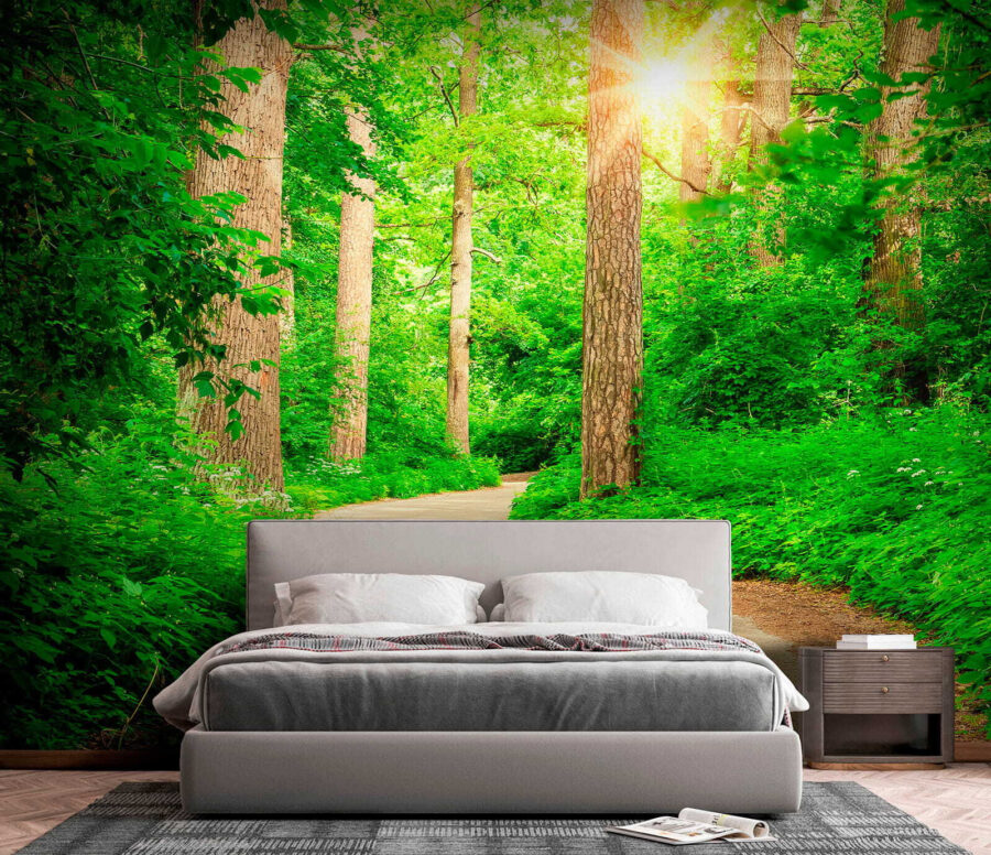 Transformați-vă spațiul cu frumusețea senină a “Lumina soarelui prin pădurea verde luxuriantă”. Imaginați-vă că vă plimbați printr-o pădure liniștită, lumina soarelui filtrându-se prin frunzele vibrante, creând modele pe sol. Această pictură murală nu este doar o decorațiune de perete; este o invitație la o respirație mai ușoară. Verdele proaspăt și lumina caldă aduc un sentiment de calm, stârnind în același timp visuri cu ochii deschiși despre plimbări în natură și trasee ascunse. Perfectă pentru un colțișor confortabil sau pentru acel perete care are nevoie de un pic mai multă dragoste, aceasta adaugă un strop de viață care va lumina cu siguranță orice cameră. Îmbrățișați frumusețea marilor spații în aer liber chiar la voi acasă!