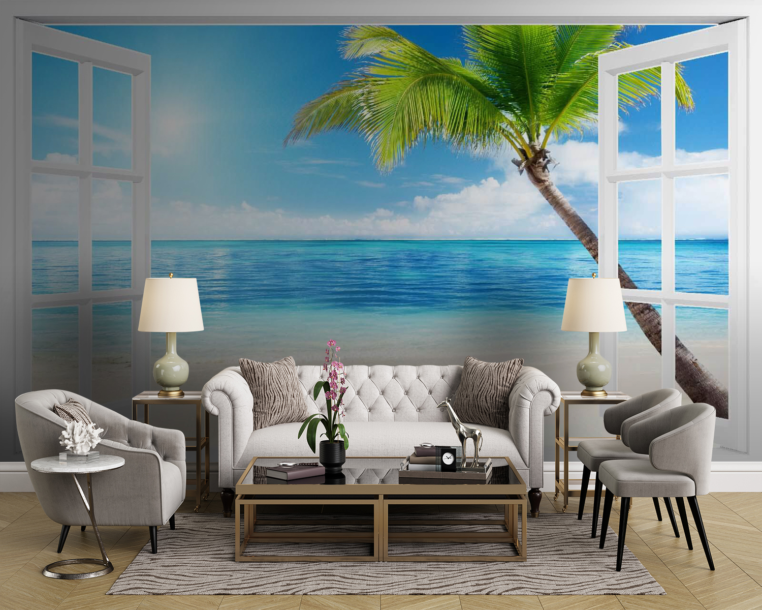 Transformați orice cameră într-o escapadă însorită cu acest mural “Door Open to a Beach”. Imaginați-vă că intrați în spațiul dvs. și simțiți instantaneu acea briză tropicală – grijile dvs. se îndepărtează ca valul. Valurile vibrante și palmierul legănat creează o evadare senină chiar în casa dvs. Este perfect pentru acel colț de lectură confortabil sau pentru o cameră de familie plină de viață, invitând la visare cu ochii deschiși și la vibrații de plajă pe tot parcursul anului. Imaginați-vă o după-amiază leneșă, sorbind o băutură rece, în timp ce soarele vă încălzește sufletul. Această pictură murală nu este doar decor; este o invitație la relaxare și evadare, fără a fi nevoie de bilet.