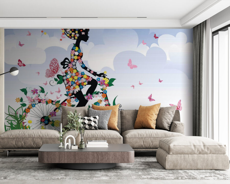 Vă prezentăm un element decorativ capricios pentru orice spațiu – „Fototapetul cu femeie pe bicicletă cu flori”. Acest fototapet nu este doar un element decorativ, ci este ca o gură de aer proaspăt de primăvară în casa dumneavoastră. Imaginați-vă o siluetă vibrantă care pedalează printr-o grădină plină de flori și fluturi zburând. Este perfect pentru acel perete plictisitor care are nevoie de puțină viață sau pentru colțul care are nevoie de puțină magie. Imaginați-vă o seară plăcută cu prietenii, râzând și povestind, în timp ce acest mural adaugă un strop de bucurie camerei. Nu este doar o priveliște; stârnește zâmbete și vise cu ochii deschiși despre zile însorite. O amintire încântătoare că viața este o călătorie care se bucură cel mai bine în plină floare!