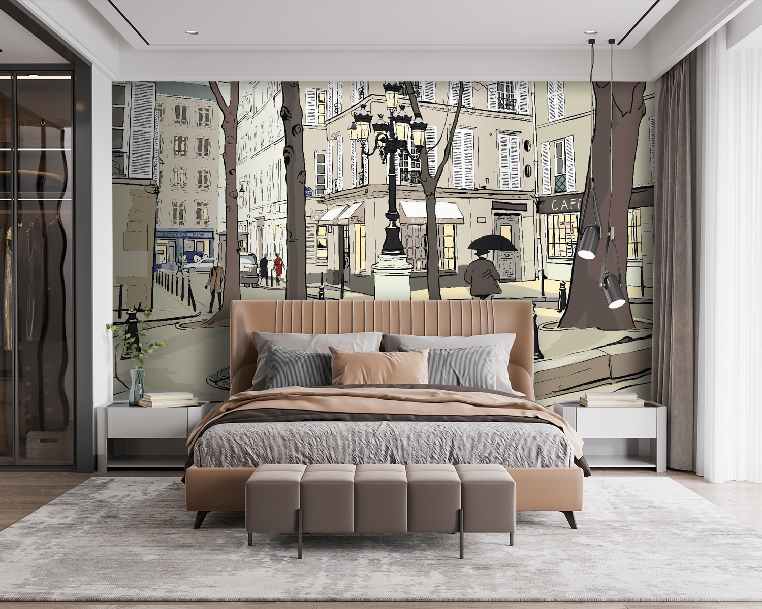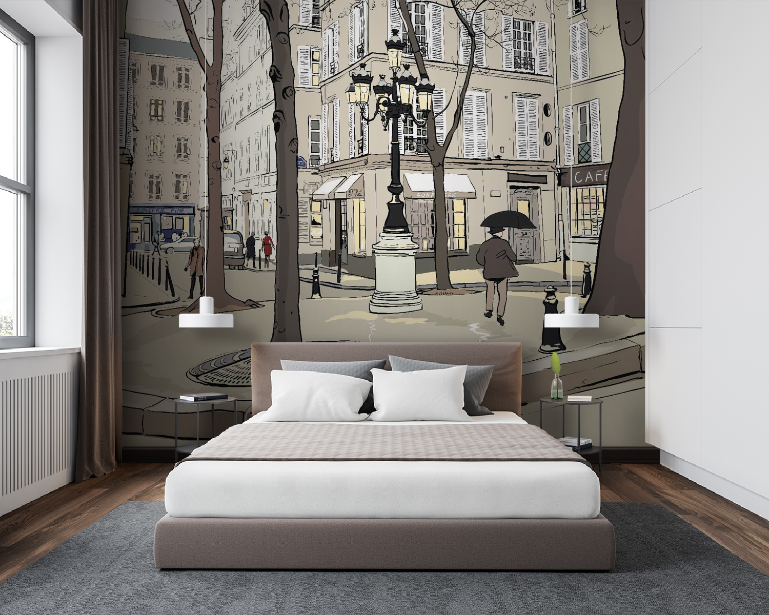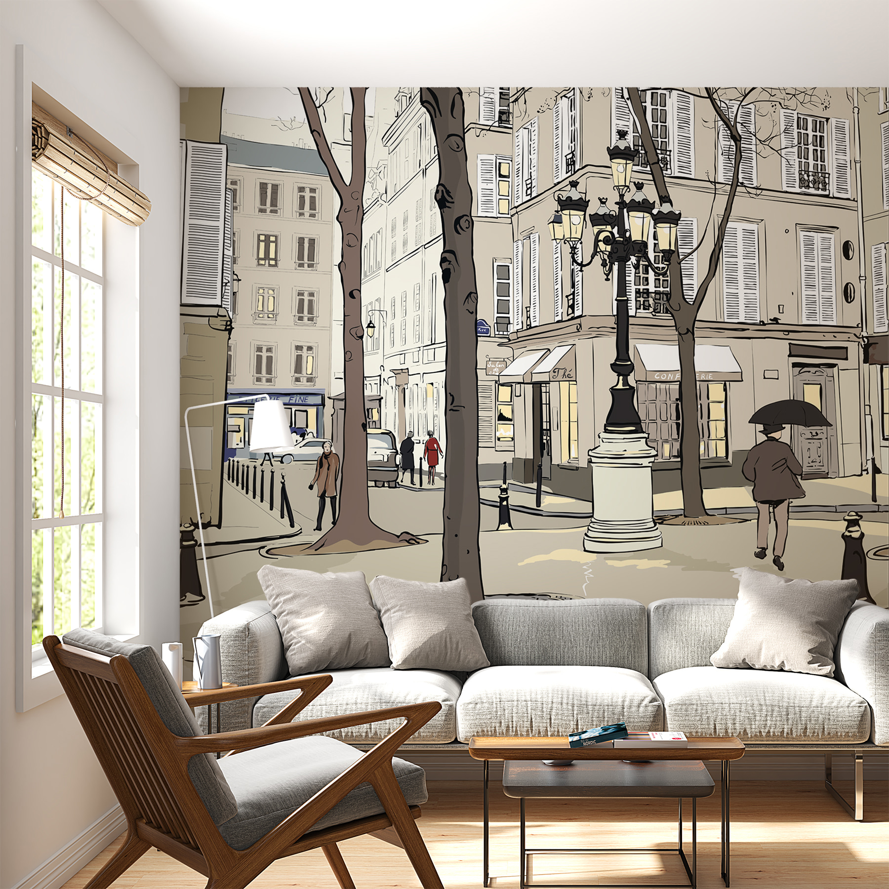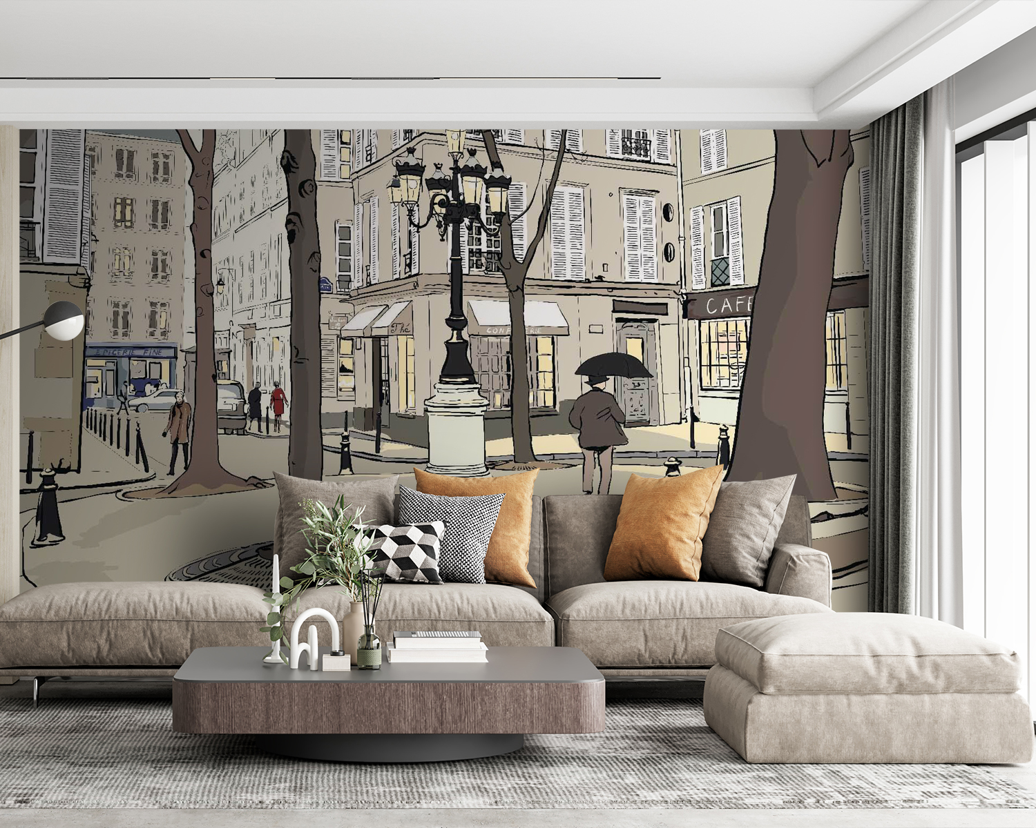 Transformați un perete simplu într-o scenă plină de viață cu această pictură murală capricioasă care surprinde esența vieții de oraș. Imaginați-vă o plimbare pe o stradă fermecătoare, flancată de copaci înalți și cafenele pitorești, unde fiecare privire dezvăluie ceva încântător. Paleta blândă de culori aduce un vibe confortabil, făcându-l perfect pentru o cameră de zi sau un spațiu creativ. Imaginați-vă cafeaua de dimineață cu acest fundal sau o atmosferă jucăușă în camera unui copil. Este ca și cum ai invita o bucățică de oraș în casa ta – ciudată, înduioșătoare și plină de povești. Este mai mult decât o simplă pictură murală; este o experiență care așteaptă să se desfășoare cu fiecare moment comun.