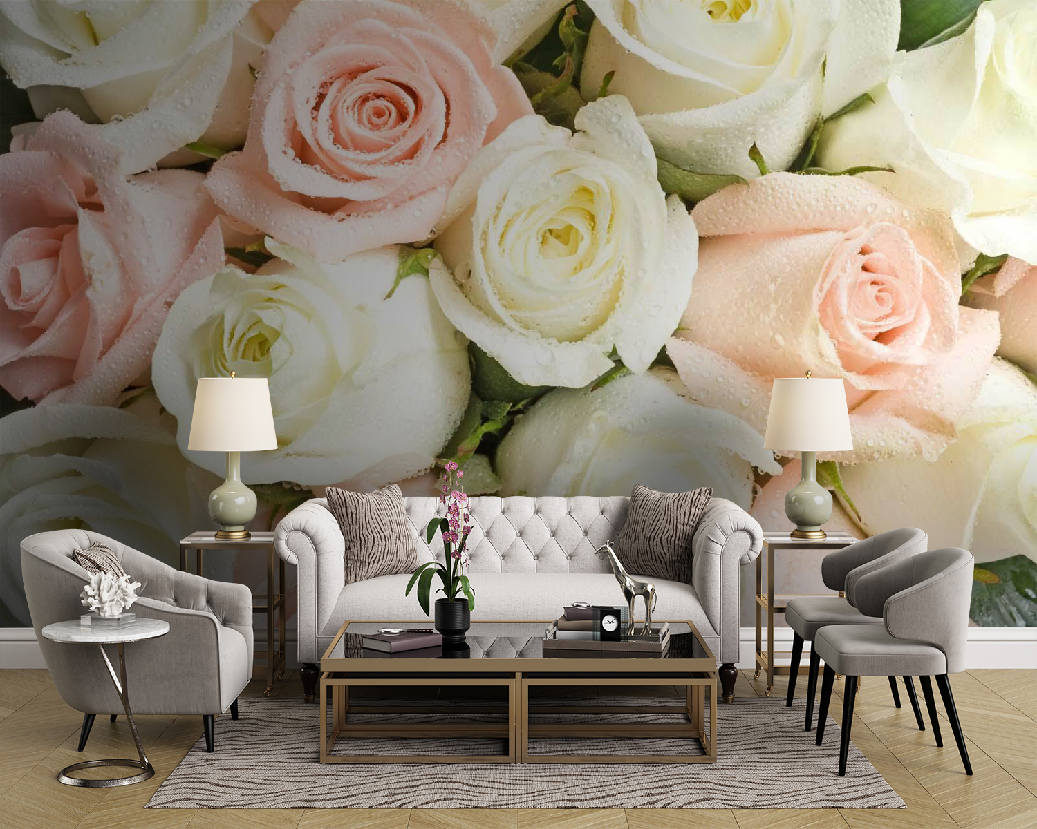 Transform your space with this stunning wall mural featuring a delightful mix of pink and white roses. Imagine walking into a room and being greeted by a burst of floral charm that feels like a garden party—without the need for watering cans! The soft hues whisper relaxation, while those lovely raindrops on the petals bring a refreshing touch. Perfect for a cozy reading nook or a lively living room, it’s like having nature’s beauty at your fingertips. Who wouldn’t smile glancing at such a cheerful sight? Time to bring the outside in and let those roses work their magic!