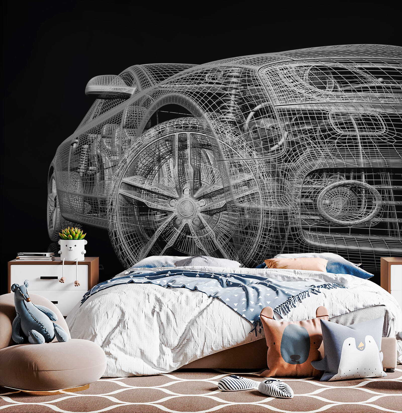 Imaginați-vă că vă treziți și sunteți întâmpinați în fiecare zi de această pictură murală super elegantă și futuristă. Este ca și cum ai păși într-un decor de film SF, dar chiar în camera ta de zi sau în dormitorul micului tău pasionat de mașini. Serios, aceasta nu este doar o artă murală oarecare – designul digital întâlnește capodopera modernă.