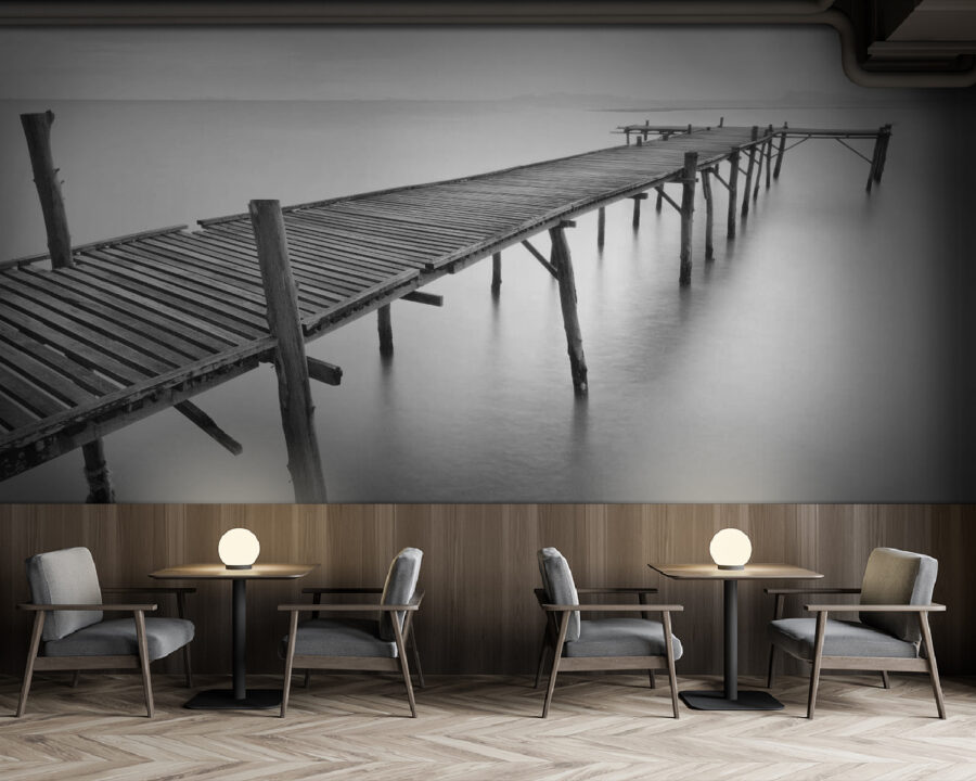Transformați-vă spațiul cu o pictură murală care surprinde farmecul liniștit al unui pod lung de lemn întins peste ape calme. Imaginați-vă că stați la margine, respirați adânc și lăsați liniștea să vă cuprindă. Această piesă uimitoare aduce marele aer liber în interior, estompând liniile dintre natură și designul interior. Perfectă pentru o cameră de zi sau un colț de lectură, aceasta invită la visarea cu ochii deschiși a după-amiezilor liniștite pe malul apei. Prietenii se vor găsi pierduți în gânduri, dorindu-și o plimbare pe acel pod. Este ca o mini-vacanță pe peretele tău, fără valiză!
