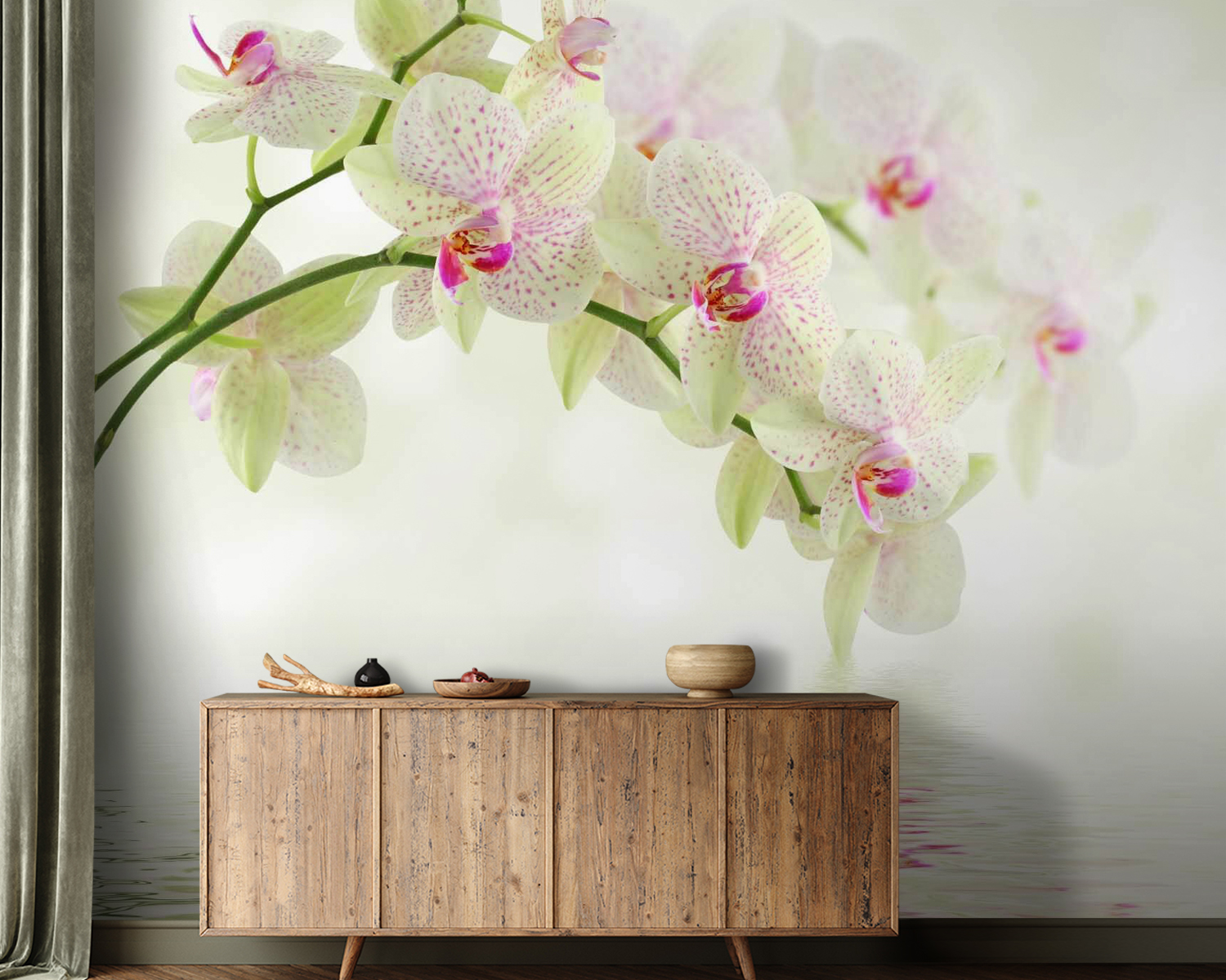 Transformați orice perete plictisitor într-o evadare senină cu această pictură murală uimitoare cu orhidee care se reflectă în apa liniștită. Imaginați-vă că vă treziți în fiecare zi, întâmpinați de nuanțele blânde și de unduirile blânde care evocă o oază de liniște chiar în casa dvs. Este ca și cum ați avea o felie din frumusețea naturii, fără agitația de a uda plantele sau de a vă îngrijora de lumina soarelui. Prietenii vor trece pe aici și se vor întreba cum ați reușit să creați o atmosferă atât de încântătoare – dezvăluiți secretul și priviți-i cum leșină! Perfectă pentru un living confortabil sau un dormitor de vis, această pictură murală invită vibrații calme în spațiul tău. Este vorba despre crearea unui refugiu liniștit în care fiecare privire se simte ca o gură de aer proaspăt. Un pic de magie florală merge departe, nu-i așa?