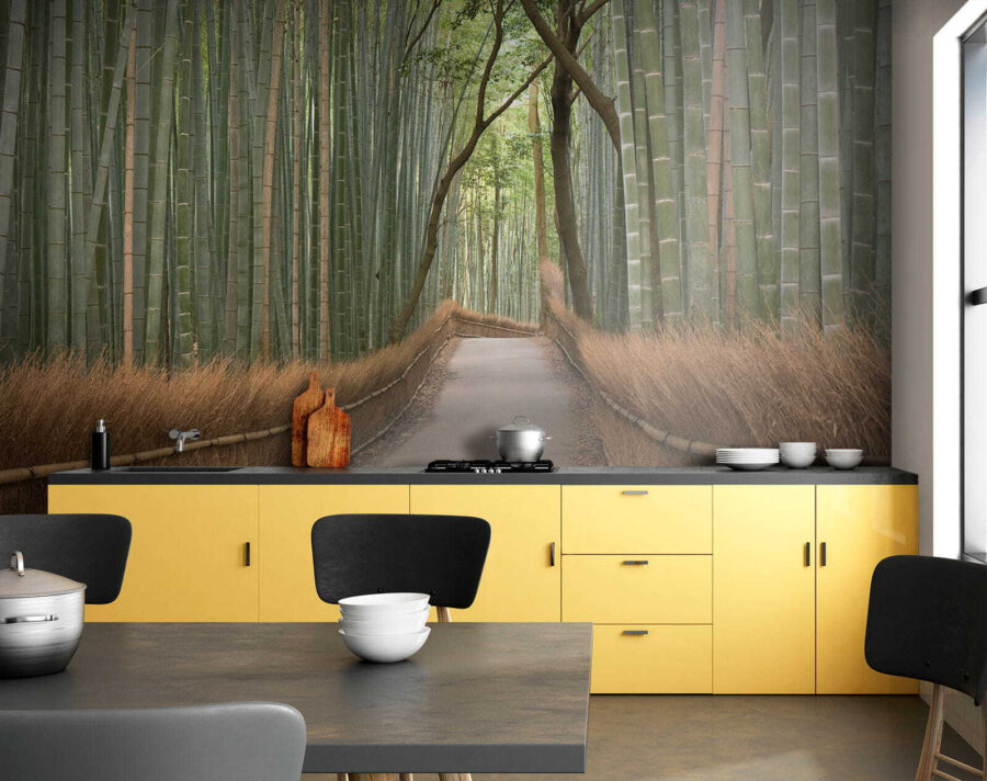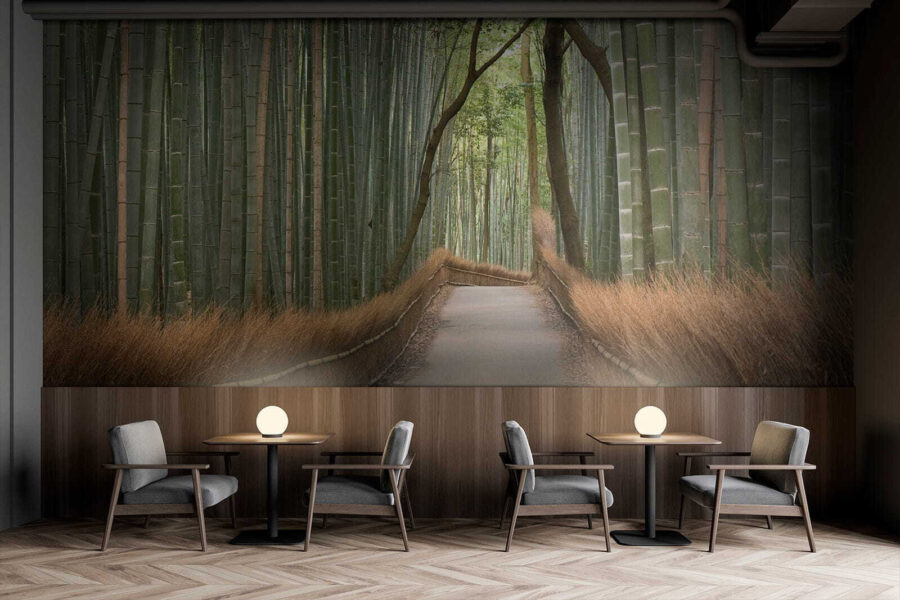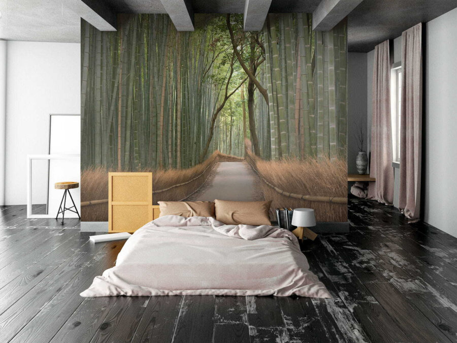 Imaginați-vă că pășiți direct pe o cărare senină, din bambus, de fiecare dată când vă uitați la perete. Această pictură murală, intitulată “Road with a Bamboo Fence” (Drum cu gard de bambus), introduce fără efort natura în camera ta. Este perfect pentru oricine este înnebunit după un decor unic. Bambusul înalt și verde și gardul fermecător aproape că te fac să te simți ca și cum te-ai plimba printr-o pădure liniștită. Perfect pentru un pic de zen în viața ta ocupată, sau doar un starter de conversație cool atunci când prietenii trec pe aici. Ideală pentru sufragerii, dormitoare sau oriunde aveți nevoie de un pic de evadare – fără a ieși din casă!