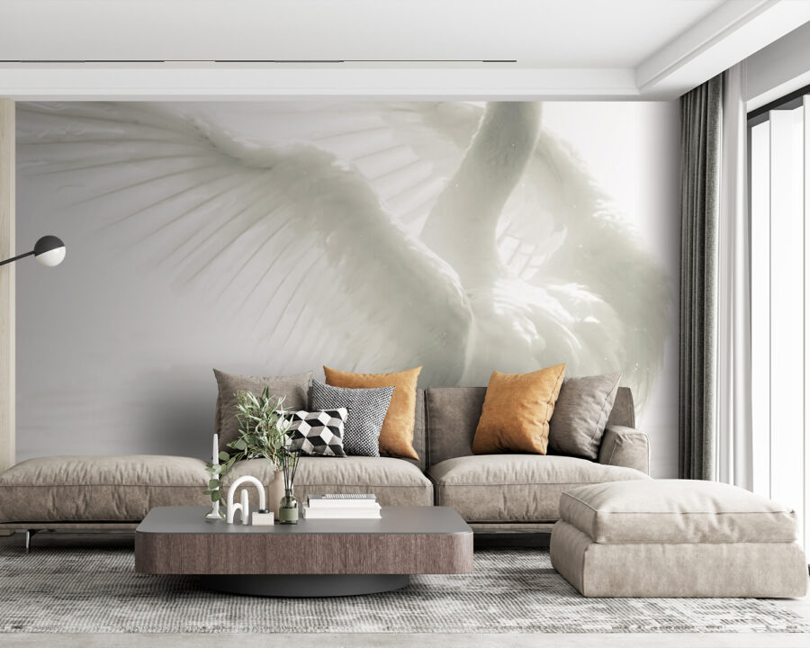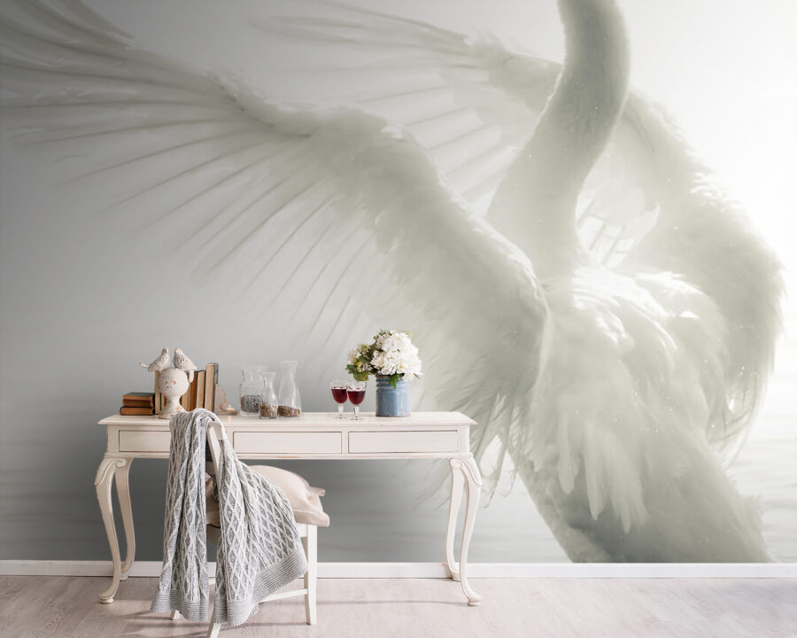Transformați-vă spațiul cu această pictură murală uimitoare a unei lebede albe care își întinde aripile în apele liniștite. Aceasta aduce o atmosferă senină, dar izbitoare, perfectă pentru o cameră de zi sau un colț liniștit unde vă sorbiți cafeaua de dimineață. Imaginați-vă că o priviți și vă simțiți ca o pasăre grațioasă, înălțându-se deasupra agitației cotidiene. Mișcarea ușoară a aripilor sale invită la calm și farmec. Este ca și cum ai avea o bucată de natură chiar pe perete – fără pene murdare de curățat! Această pictură murală stârnește conversații, cu siguranță va atrage privirile și va stârni zâmbete. Perfectă pentru cei care apreciază arta care șoptește frumusețe și eleganță.