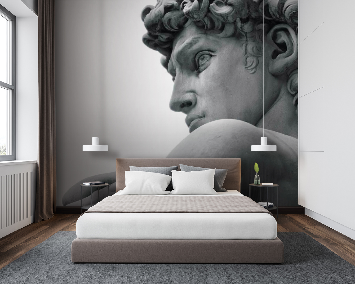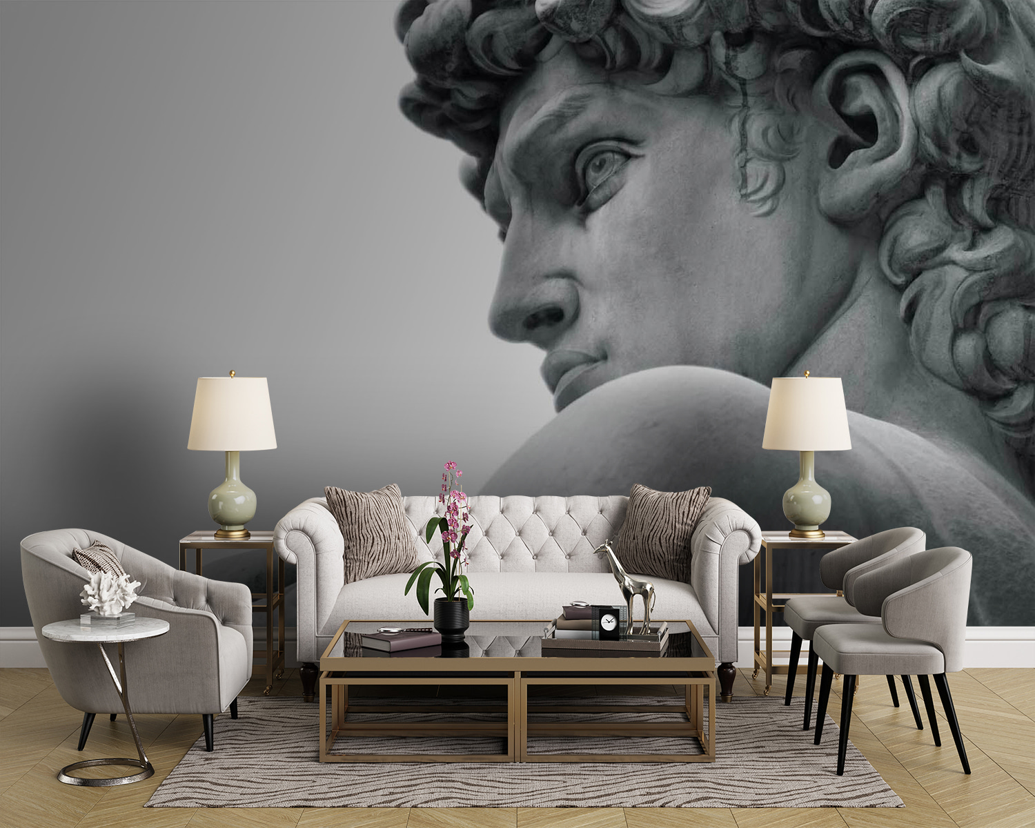 Această pictură murală a unei statui de bărbat este ca și cum ai aduce o parte dintr-un mare muzeu chiar în spațiul tău. Imaginați-vă că acest chip izbitor și atemporal vă supraveghează sufrageria – un starter de conversație instant, nu-i așa? Este perfect pentru cei care tânjesc după un pic de eleganță clasică, dar într-un decor proaspăt, modern. Detaliile sunt atât de vii încât aproape că puteți simți netezimea rece a marmurei. Ar putea transforma complet un perete obișnuit într-un punct focal uimitor. Gândiți-vă că, de fiecare dată când aruncați o privire, vă veți simți un pic mai cult și mai sofisticat!