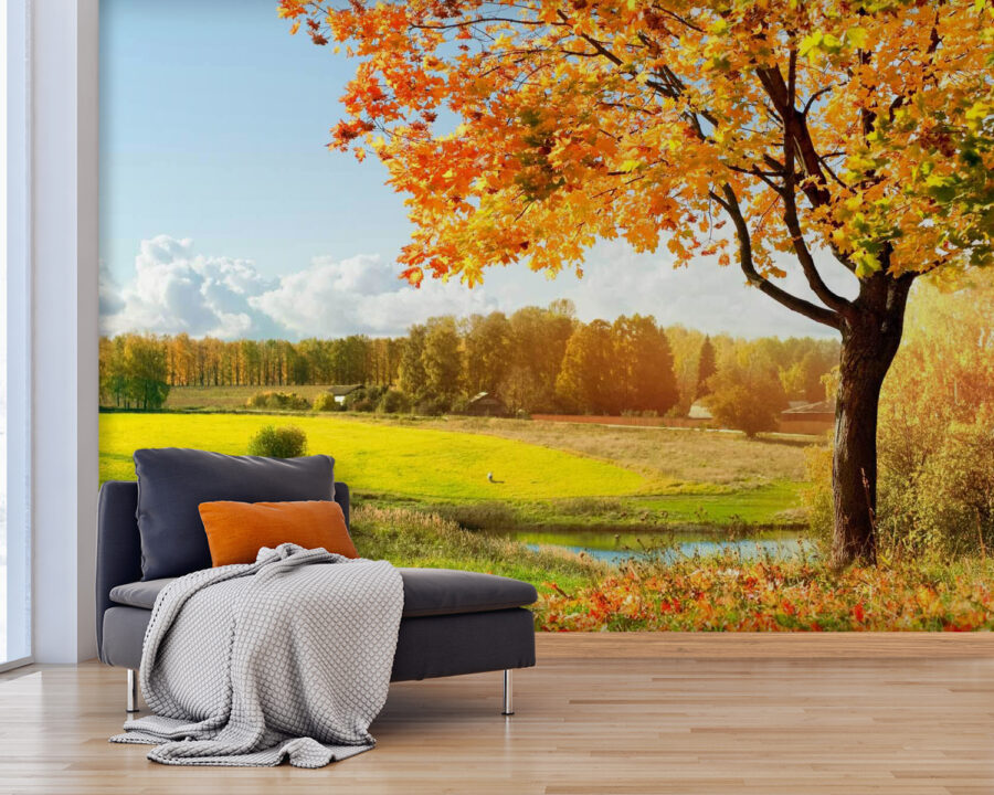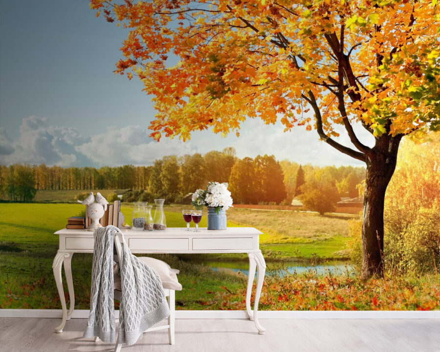 Imaginați-vă că intrați într-o cameră și sunteți întâmpinați de strălucirea vibrantă a frunzelor portocalii pe fundalul unui cer albastru însorit. Acest fototapet, „Copac cu frunze portocalii într-un câmp”, face exact asta! Este ca o gură de aer proaspăt în fiecare zi. Imaginați-vă dimineți confortabile, savurând o cafea, cu privirea îndreptată spre această piesă uimitoare care surprinde frumusețea naturii. S-ar putea să vă inspire vise cu ochii deschiși despre după-amieze leneșe de toamnă sau picnicuri în familie. Perfect pentru a transforma un spațiu plictisitor în ceva plin de viață și căldură. În plus, va stârni cu siguranță conversații colorate – cui nu-i place o discuție plăcută despre natură? Aduceți vibrațiile!