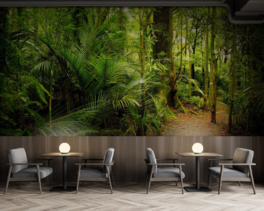 Transformați un perete plictisitor într-o evadare luxuriantă cu „Wall Murals Path through a Forest” (Fototapet „Calea prin pădure”). Imaginați-vă că pășiți într-o junglă liniștită de fiecare dată când intrați în cameră – este ca și cum ați avea propria bucată de natură, fără țânțari. Acest fototapet vă înconjoară cu verdeață vibrantă, cu o potecă fermecătoare care vă invită să explorați. Este perfect pentru acele după-amieze de vis, în care savurezi o ceașcă de ceai înconjurat de prieteni frunzoși. Cu siguranță e mai bine decât să te uiți la pereți goi, nu-i așa? În plus, adaugă o notă de liniște oricărui spațiu. Pregătește-te să simți acea atmosferă confortabilă – pădurea este la doar un mural distanță!