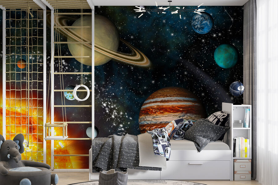 Aruncați o privire la această pictură murală numită “Planeta cu inele în jurul ei” – este cu adevărat ieșită din comun! Perfect pentru camere de copii, spații de designer sau pentru oricine este un pic tocilar al spațiului. Imaginați-vă că vă treziți în fiecare zi cu o galaxie chiar în camera voastră. Adică, cine nu și-ar dori să își înceapă dimineața cu o călătorie în jurul inelelor lui Saturn?