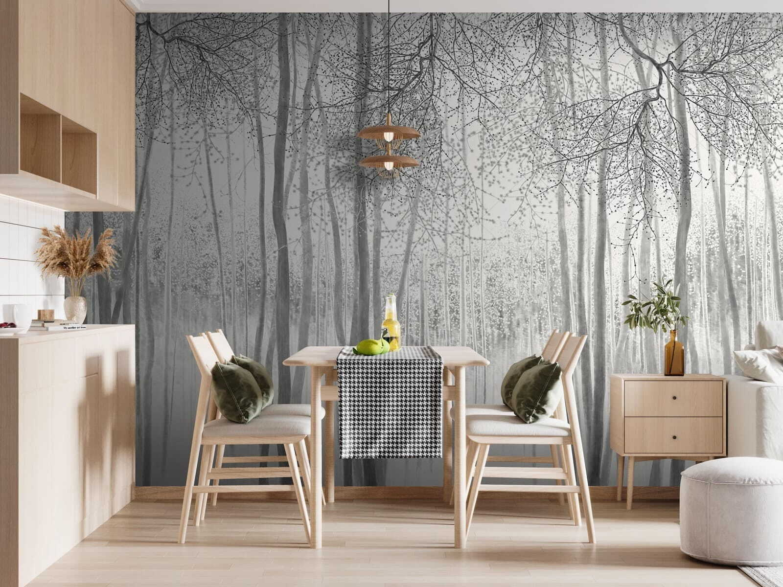 Transformați-vă spațiul într-un paradis iernatic liniștit cu acest mural uimitor, „Grup de copaci într-o pădure înzăpezită”. Imaginați-vă că pășiți într-o pădure liniștită, unde zăpada acoperă ușor solul și copacii se înalță, împodobiți cu îngheț delicat. Totul ține de acea atmosferă pașnică, nu-i așa? Imaginați-vă că vă cuibăriți cu o cană fierbinte de cacao, simțindu-vă ca și cum ați fi înconjurați de natură fără a părăsi sufrageria. Nuantele delicate de alb-negru aduc un plus de eleganță, în timp ce peisajul de vis invită la visare cu ochii deschiși despre aventuri în zăpadă. Perfect pentru un colț confortabil sau un perete de efect, acest mural adaugă căldură și farmec oricărui spațiu. Cine are nevoie de haine de iarnă când vă puteți înveli în această senzație confortabilă în fiecare zi?
