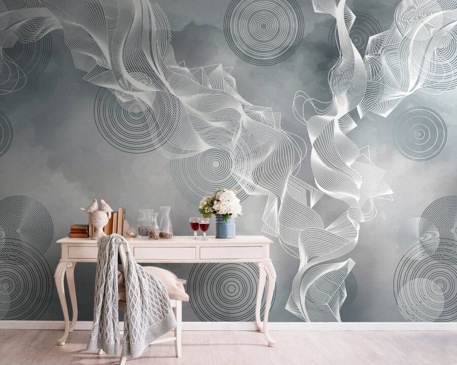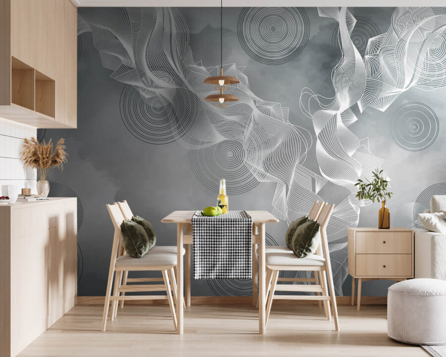 Transformați-vă spațiul cu pictura murală captivantă cu vârtejuri albe și negre pe un fundal gri subtil. Acest design dansează pe perete, invitând la un sentiment de mișcare și curgere care poate face orice cameră să se simtă vie. Este ca și cum ai avea o mică felie de artă modernă chiar în camera ta de zi! Imaginați-vă sorbind cafea în timp ce priviți aceste vârtejuri intrigante – serios, va stârni niște conversații grozave. În plus, se îmbină fără efort cu diferite stiluri, astfel încât, fie că sunteți elegant sau relaxat, această pictură murală rămâne elegantă. Peretele dvs. vă va mulțumi!