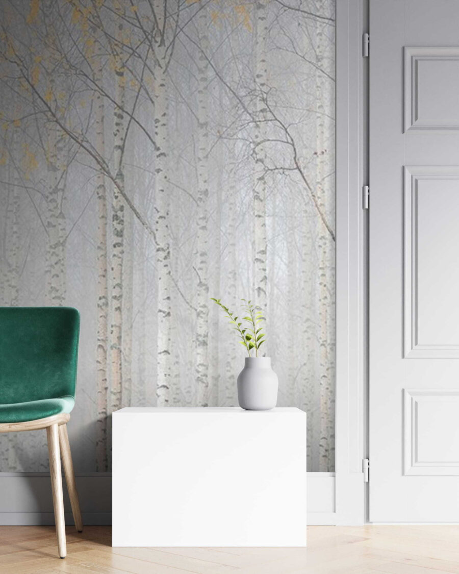 Imaginați-vă că pășiți într-un tărâm al minunilor cețos de fiecare dată când intrați în camera dvs. Este exact ceea ce vă oferă această pictură murală “Grup de copaci într-o pădure cețoasă”. Delicații mesteceni care stau tăcuți în ceață creează o atmosferă liniștitoare, de vis. Perfectă pentru acele zile confortabile, în care stai acasă, cu o carte și o ceașcă de ceai. Este ca o bucățică de natură chiar pe perete – fără cizme murdare de noroi. Această pictură murală adaugă o notă de farmec senin de pădure spațiului dvs., făcându-l să se simtă atât liniștit, cât și atemporal. Ideală pentru iubitorii de natură sau pentru oricine dorește să insufle casei sale un pic de magie a pădurii. Fie că este vorba de camera de zi, dormitor sau poate chiar un birou acasă – face ca totul să se simtă un pic mai fermecat.