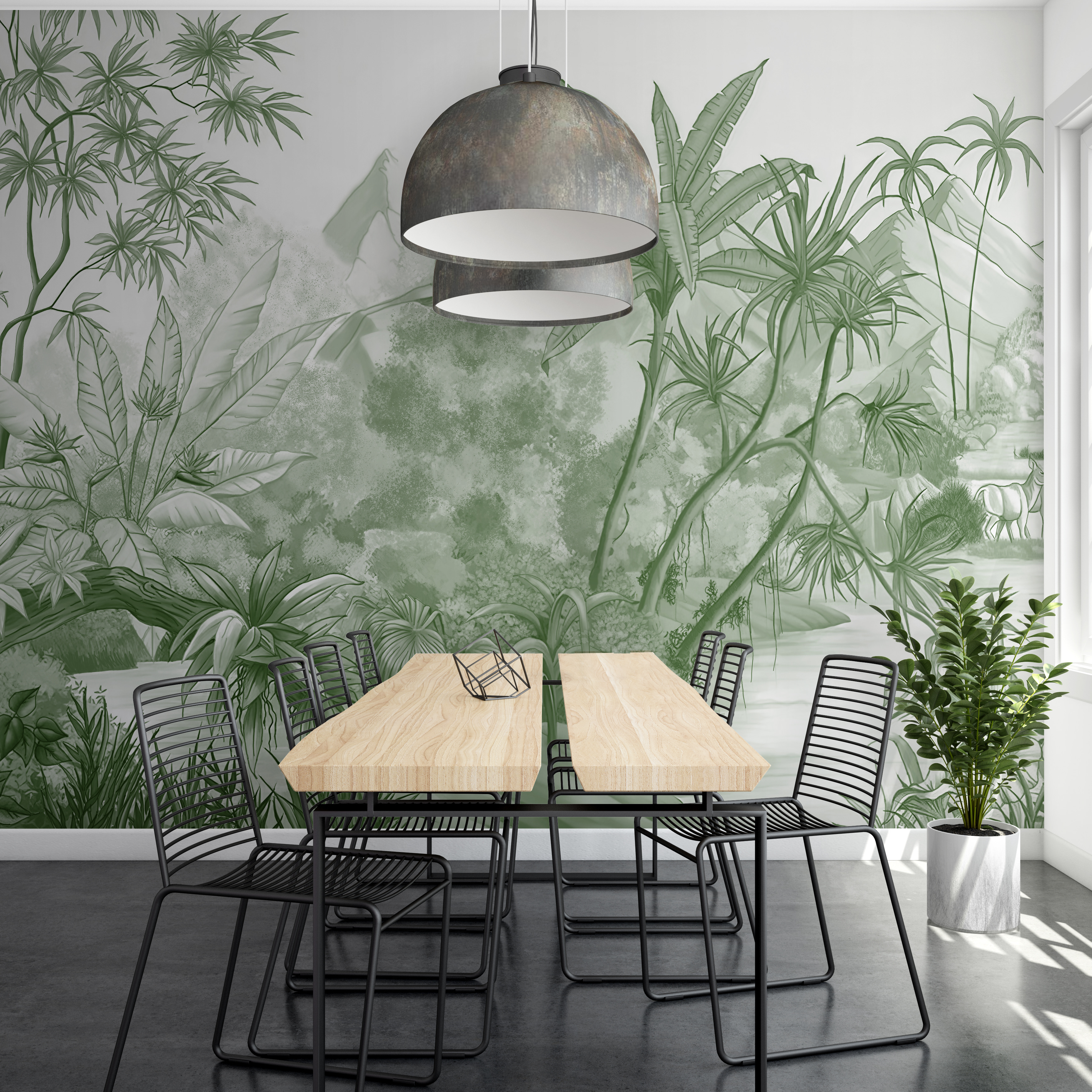 Ați visat vreodată să evadați în junglă, dar fără mușcăturile de țânțari și umiditate? Această pictură murală “Peisaj de junglă cu vegetație luxuriantă” este biletul dvs. către liniște, chiar din sufrageria dvs. Imaginați-vă acest lucru: sorbiți cafea și vă bucurați de o scenă plină de verdeață exotică – parcă ați fi îmbrățișat natura. Acei palmieri impunători și frunzișul dens transformă instantaneu orice perete plictisitor într-un mini paradis. Imaginați-vă oaspeții intrând și spunând “wow!” de parcă tocmai au pășit într-o pădure tropicală. Este mai mult decât un simplu decor; este un stimulent instantaneu al dispoziției! Fie că visezi cu ochii deschiși sau chiar lucrezi, această pictură murală creează o atmosferă senină și vibrantă greu de întrecut. Perfect pentru oricine iubește natura, dar nu vrea să se ocupe de treburile reale din junglă. Scufundați-vă, este o călătorie sălbatică (dar senină)!
