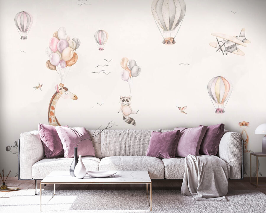 Imaginați-vă că intrați într-o cameră în care o lume capricioasă prinde viață. Această pictură murală, care prezintă un hipopotam vesel printre prieteni precum o girafă jucăușă și un flamingo cochet, aduce imediat bucurie. Imaginați-vă-i pe cei mici privind în sus, cu ochii mari de uimire, în timp ce baloanele plutesc deasupra – cu siguranță genul de scenă care stârnește chicoteli și vise cu ochii deschiși. S-ar putea să te trezești și tu că arunci o privire, transportat într-o după-amiază lipsită de griji în care animalele zboară. Este perfect pentru o cameră de copii sau de joacă, dar, sincer, cine nu și-ar dori această atmosferă încântătoare oriunde? Cine știe? Ar putea inspira imaginația sălbatică a unui copil sau doar să-i reamintească unui adult să ia viața mai puțin în serios. Un strop de distracție care va lumina orice spațiu!