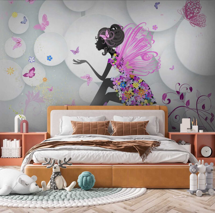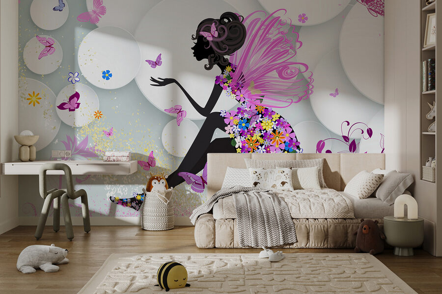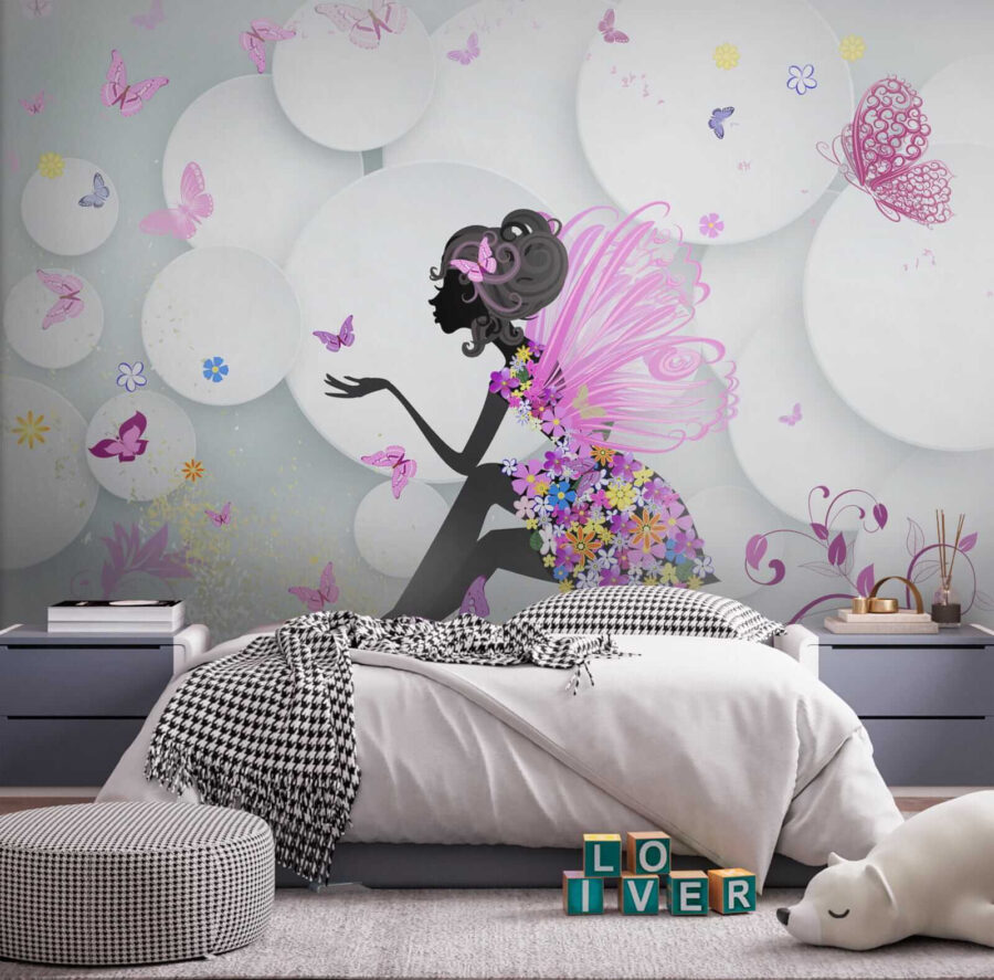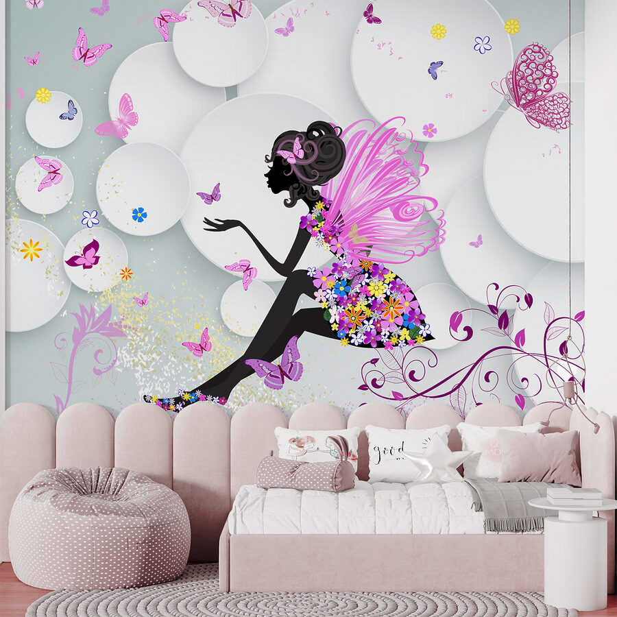 Bună ziua! Căutați să adăugați un strop de fantezie în camera fiicei dvs.? Aruncați o privire la această superbă pictură murală, numită pe bună dreptate “Farfurie albă cu floare albastră”. Este ca un basm transformat în artă – fluturi vibranți zburând în jurul unei zâne de vis. Imaginați-vă că micuțul dvs. vede acest lucru în fiecare dimineață, este suficient pentru a face pe oricine să zâmbească!