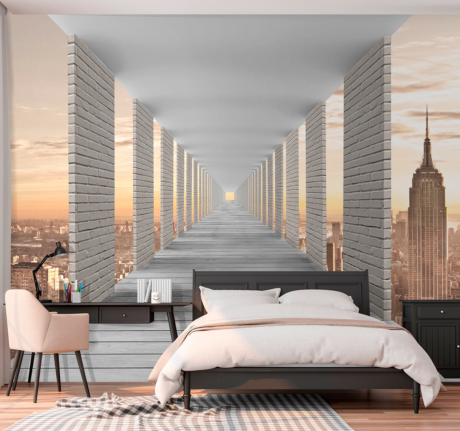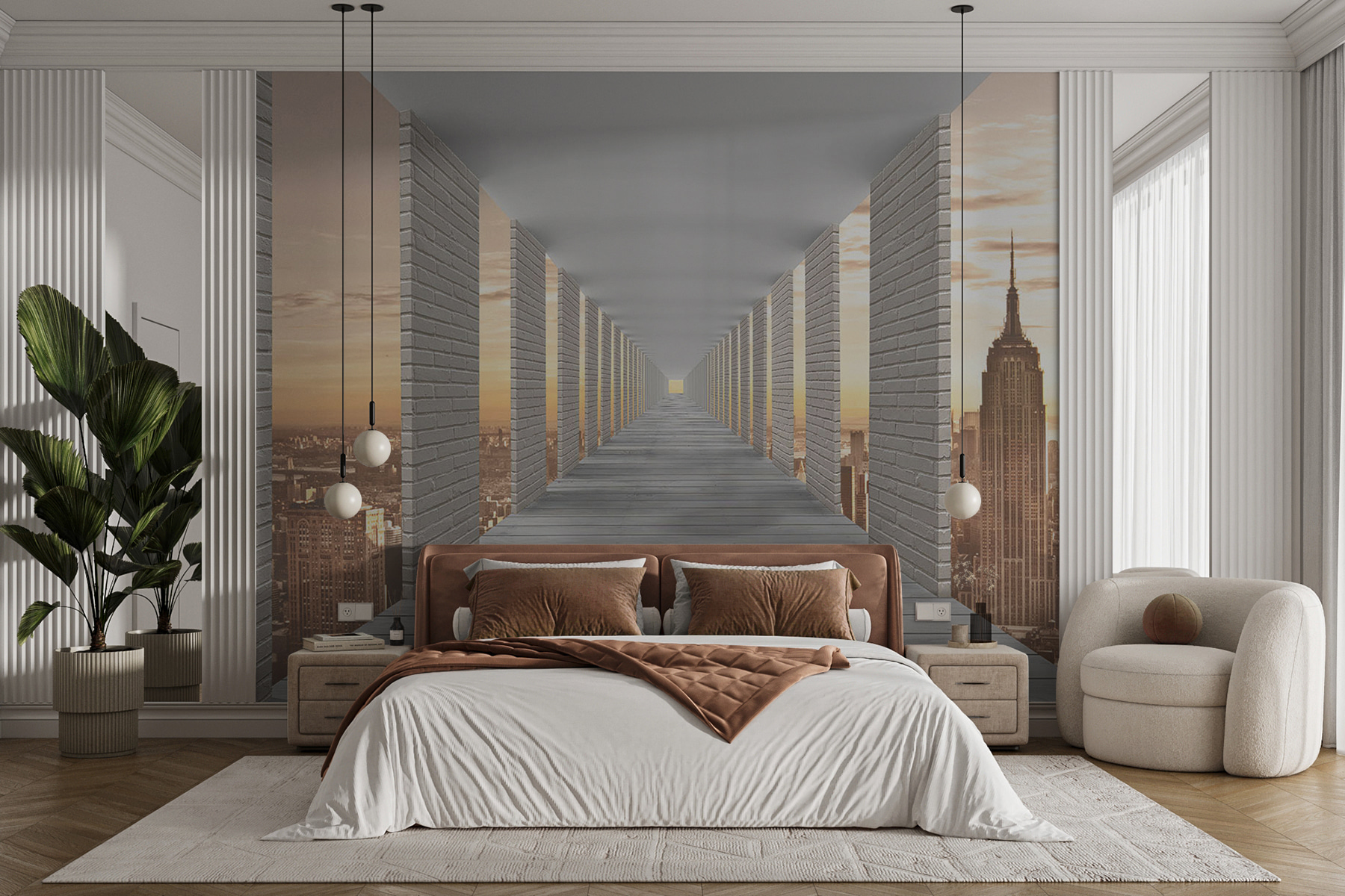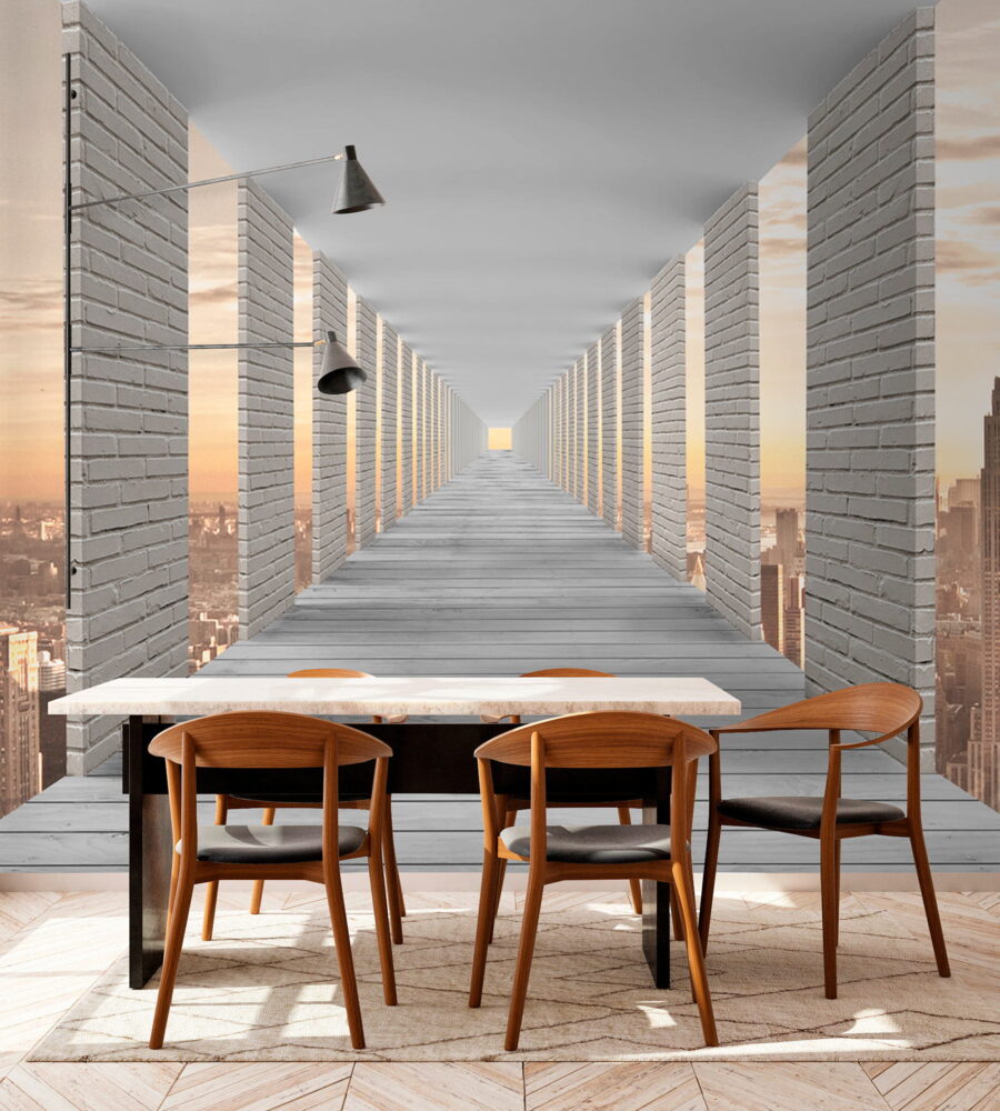 Imaginați-vă că aveți această pictură murală de vis pe perete, unde un hol nesfârșit duce la un peisaj urban magic. Liniile reci și ascuțite ale clădirii înalte și ferestrele nesfârșite dau spațiului tău un sentiment de profunzime – aproape ca și cum camera ta ar fi crescut și ar fi atins un cu totul alt nivel de sofisticare. Nuanțele calde ale apusului de soare din afara “ferestrelor” aduc o atmosferă confortabilă, dar expansivă, perfectă pentru a visa cu ochii deschiși sau pentru a vă preface că vă aflați într-un loft urban de lux. Este ca și cum pereții dvs. au descoperit că pot evada fără să vă lase în urmă! Transformă complet un perete fad într-un subiect de conversație. Vibe-ul acestei picturi murale este atât de… city-chic, știi? Și cine nu și-ar dori un pic din asta în camera de zi sau în birou?