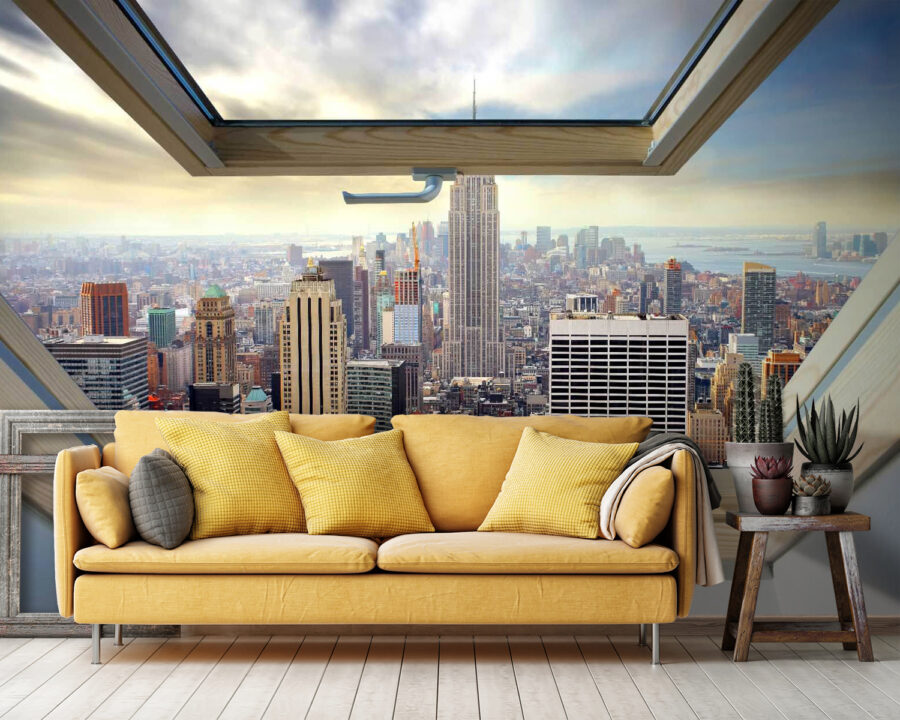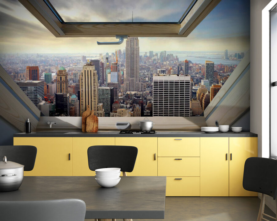 Imaginați-vă următoarea scenă: o dimineață însorită, o briză ușoară care pătrunde prin fereastra deschisă și o priveliște panoramică asupra unui oraș plin de viață – toate acestea din confortul propriului cămin. Acesta este ceea ce promite acest fototapet, „Fototapet Fereastră cu vedere asupra orașului”. Acesta adaugă profunzime și energie oricărei camere, transformând un perete simplu într-o scenă vibrantă cu zgârie-nori care se înalță spre cer.