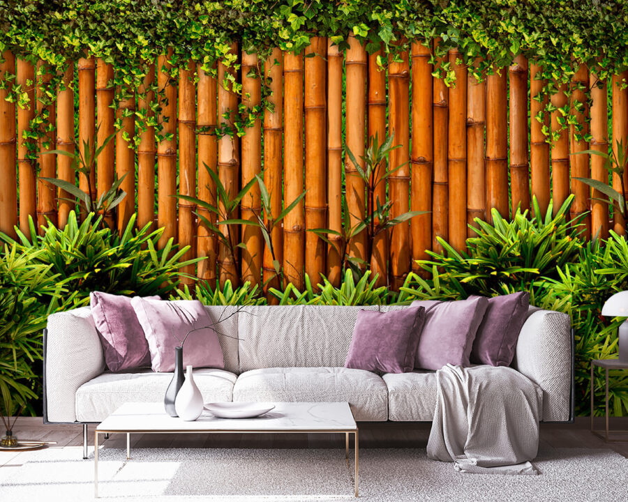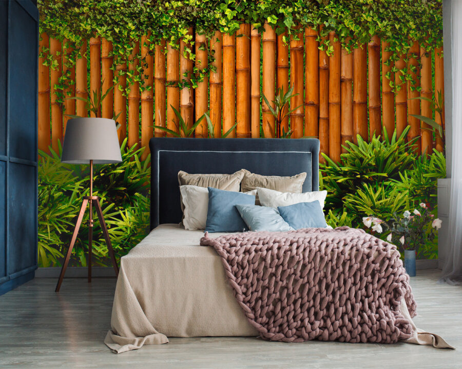 Transformați-vă spațiul într-o oază tropicală cu această pictură murală încântătoare care prezintă un gard de bambus acoperit de plante verzi luxuriante. Este ca și cum ați aduce o bucată de natură în interior, fără insecte și umiditate. Imaginați-vă sorbindu-vă cafeaua de dimineață sau relaxându-vă după o zi lungă, în timp ce vă simțiți înconjurat de o atmosferă liniștitoare de grădină. Culorile bogate și elementele naturale creează un fundal liniștitor care este perfect pentru orice cameră. Fie că este în camera de zi, în dormitor sau chiar într-un colț confortabil, această pictură murală invită la un sentiment de căldură și seninătate. Cine are nevoie de o vacanță când poate avea asta?