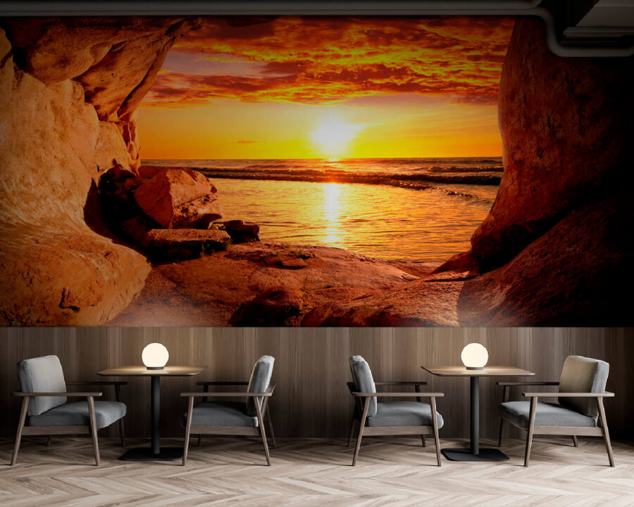 Imaginați-vă că pășiți în sufrageria dvs. și sunteți întâmpinați de o pictură murală uimitoare a unei stânci maiestuoase sub strălucirea apusului de soare, ca și cum ați fi pe cale să rătăciți în deșert. Această piesă aduce o felie de natură direct pe peretele dvs., făcând viața de zi cu zi să pară o aventură. Tonurile calde ale soarelui care se reflectă pe apă pot stârni bucurie, ca o escapadă surpriză de weekend! Imaginați-vă că vă relaxați pe canapea, cu o ceașcă de cafea în mână, în timp ce acest mural vă învăluie într-un sentiment de pace. Este mai mult decât un decor; este o mică evadare care adaugă o vibrație cu totul nouă spațiului dvs.