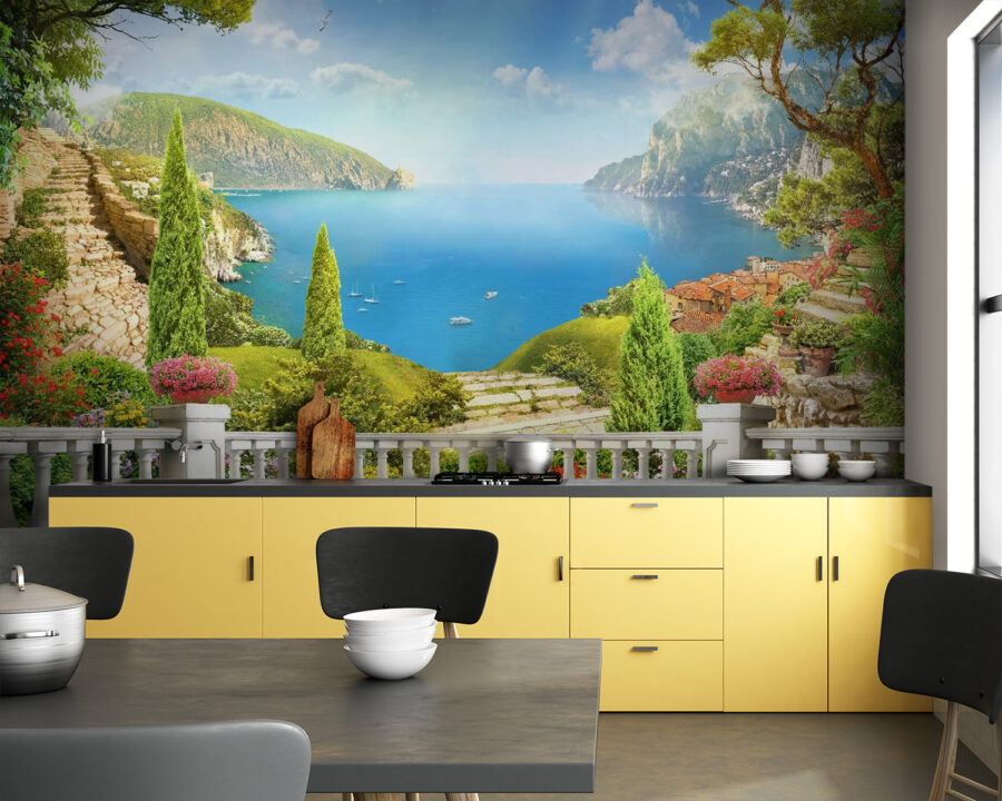 Imaginați-vă că pășiți într-o zi însorită cu această pictură murală “Pasăre zburând pe cer”. Este ca și cum ai fi dus într-o escapadă veselă pe malul mării fără să părăsești camera de zi. Aceste culori vibrante sunt pur și simplu izbitoare, aducând un strop din frumusețea naturii direct pe pereții dvs. Imaginați-vă: zumzetul blând al brizei oceanului, vegetația luxuriantă și un cer atât de albastru încât pare să cânte. Ca să nu mai vorbim de păsări – care zboară chiar deasupra capului tău, gata să împrăștie bucurie. Este perfect pentru a înveseli un colț confortabil sau pentru a face o declarație pe un perete gol. Această pictură murală nu este doar decor; este o mică felie de paradis.