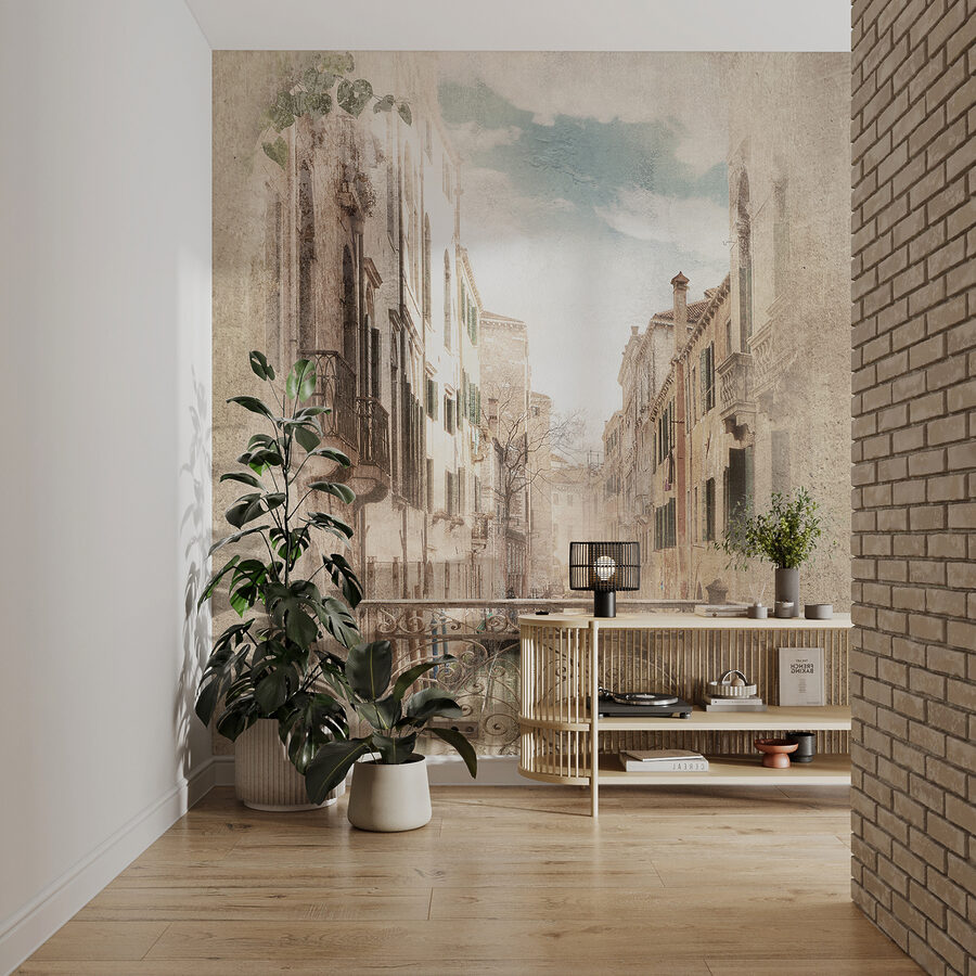 Imaginați-vă că vă plimbați zilnic pe o pitorească stradă venețiană – dar fără bilet de avion. Asta este ceea ce vă oferă acest “Fototapet Venetian street with ornate balcony”. Este ca și cum ai avea dintr-o dată cea mai fermecătoare priveliște europeană chiar în sufrageria ta. Felul în care balconul ornamentat se întinde, aproape invitându-vă să vă sprijiniți de el și să aruncați o privire pe stradă? Absolut de vis.