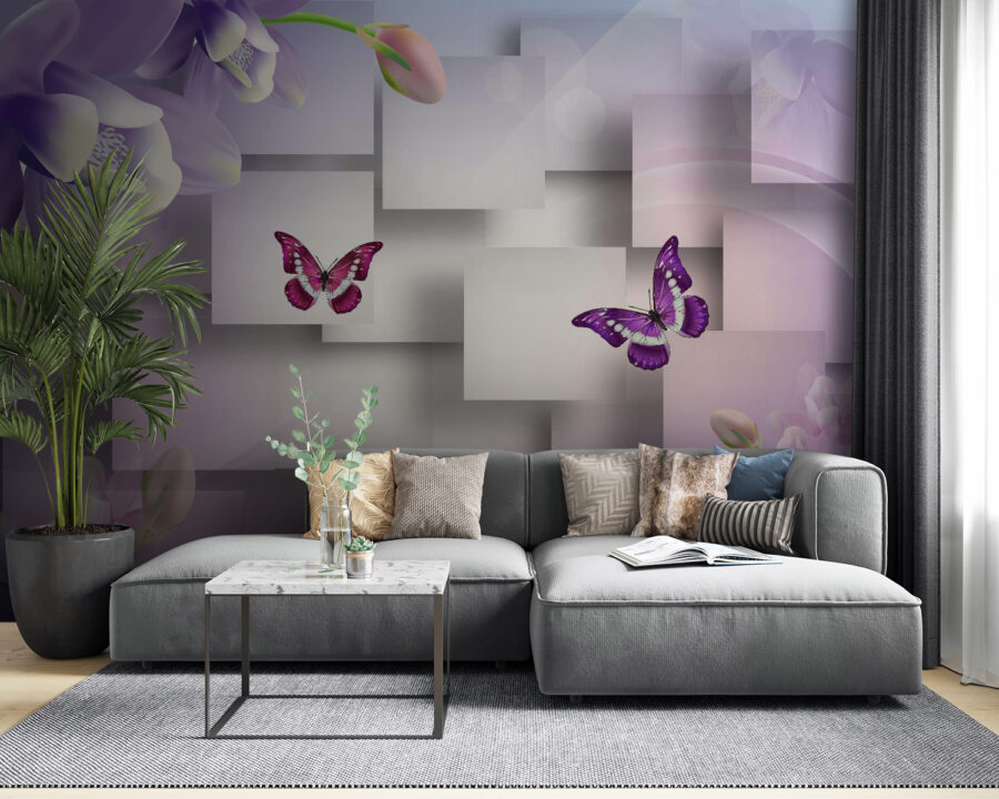Transformați-vă spațiul cu acest mural încântător cu flori și fluturi mov. Este ca și cum ați aduce o grădină de vis chiar în casa dvs., fără zumzetul albinelor! Imaginați-vă că savurați cafeaua de dimineață, bucurându-vă de nuanțele delicate, simțindu-vă ca și cum ați pluti într-o pajiște magică. Jocul delicat al culorilor adaugă o atmosferă confortabilă, perfectă pentru relaxare după o zi lungă. Este ca o operă de artă a naturii, captivantă și totodată liniștitoare. Fie că este vorba de dormitor, sufragerie sau chiar un colț ciudat, acest mural va stârni cu siguranță bucurie și câteva complimente din partea vizitatorilor. Cine nu ar zâmbi la vederea fluturilor care dansează pe pereții lor?