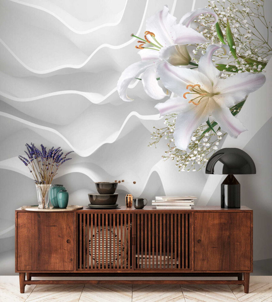 “Fototapet Lilies against wavy white pattern” este o alegere atât de visătoare pentru oricine dorește să amenajeze un spațiu cu o notă de eleganță și delicatețe! Imaginați-vă că vă treziți în fiecare zi la acești crini delicați, așezați grațios pe un fundal alb ondulat – este ca o briză ușoară de frumusețe în camera dvs. Efectul 3D adaugă acel factor wow, dând iluzia de profunzime și mișcare. Perfect pentru un dormitor sau un colț confortabil unde vă sorbiți cafeaua de dimineață. Aduce un sentiment de calm și prospețime, aproape ca și cum ați fi adus în interior o felie dintr-o grădină senină. În plus, este suficient de versatil pentru a se potrivi cu diferite stiluri de decor. Un mod minunat de a face pereții tăi să vorbească cu stil!