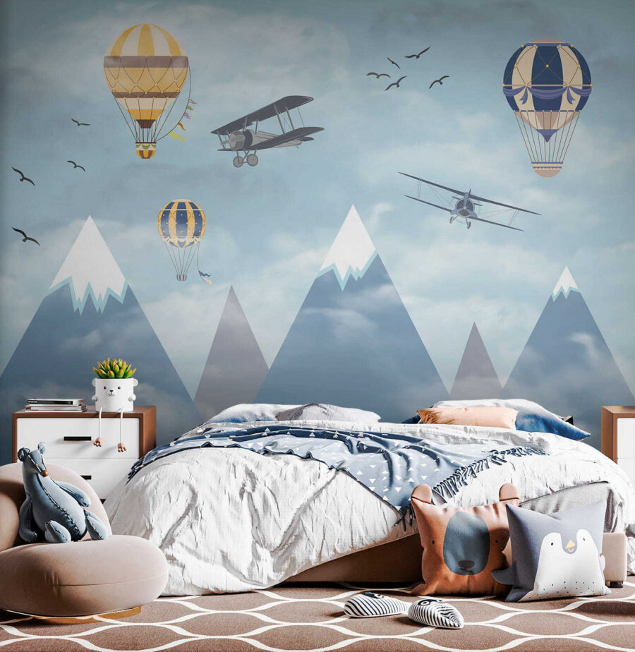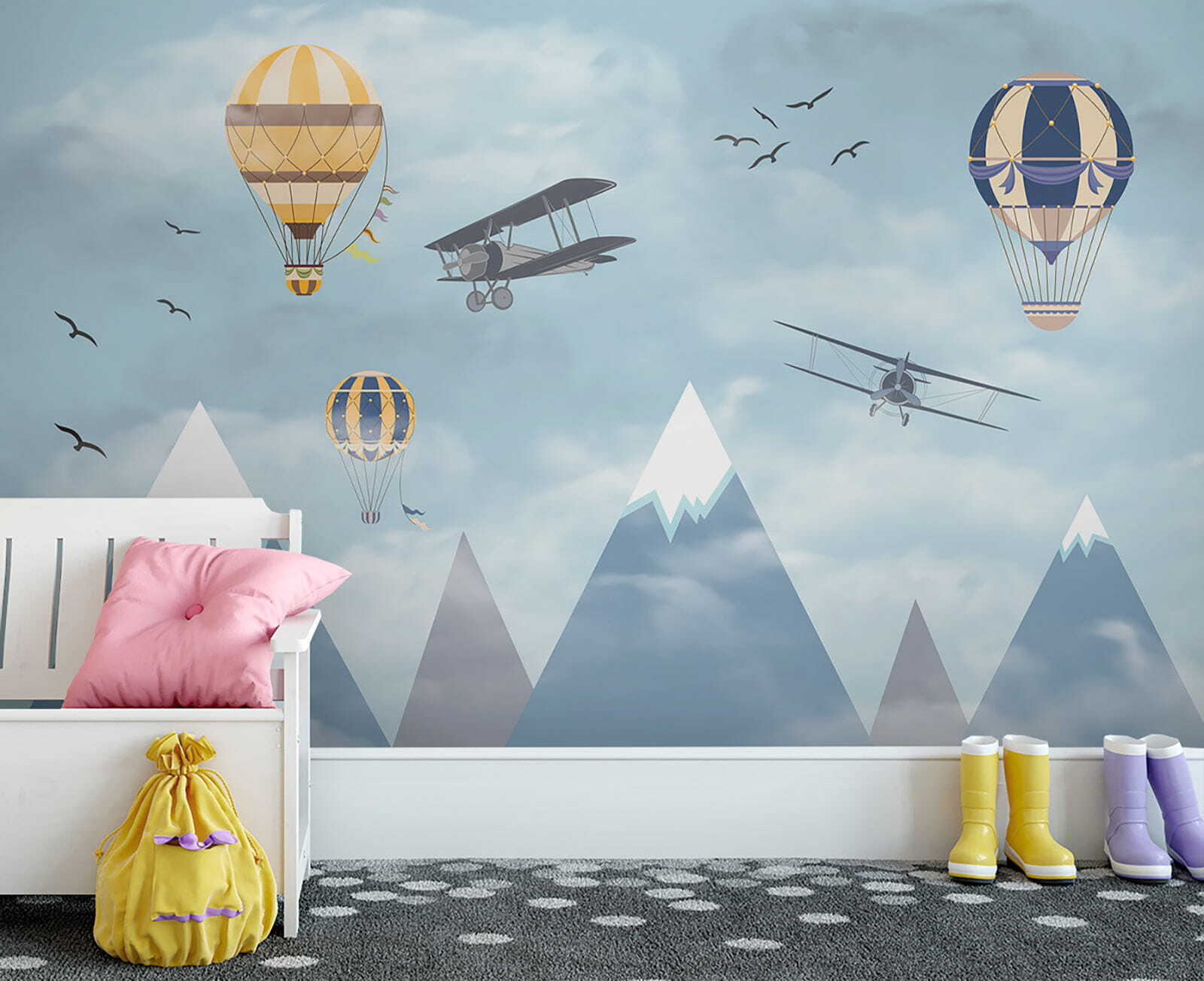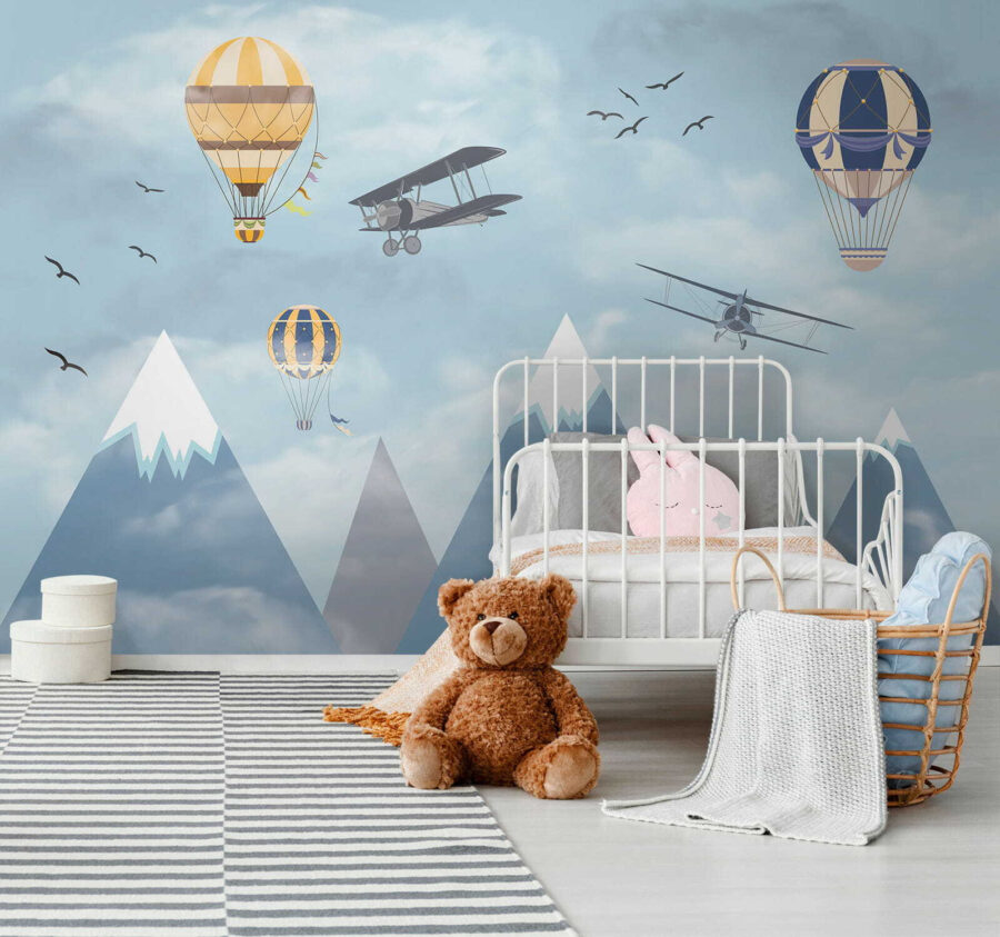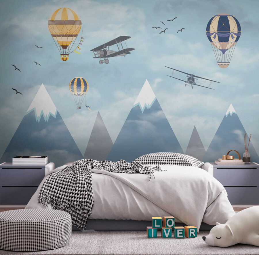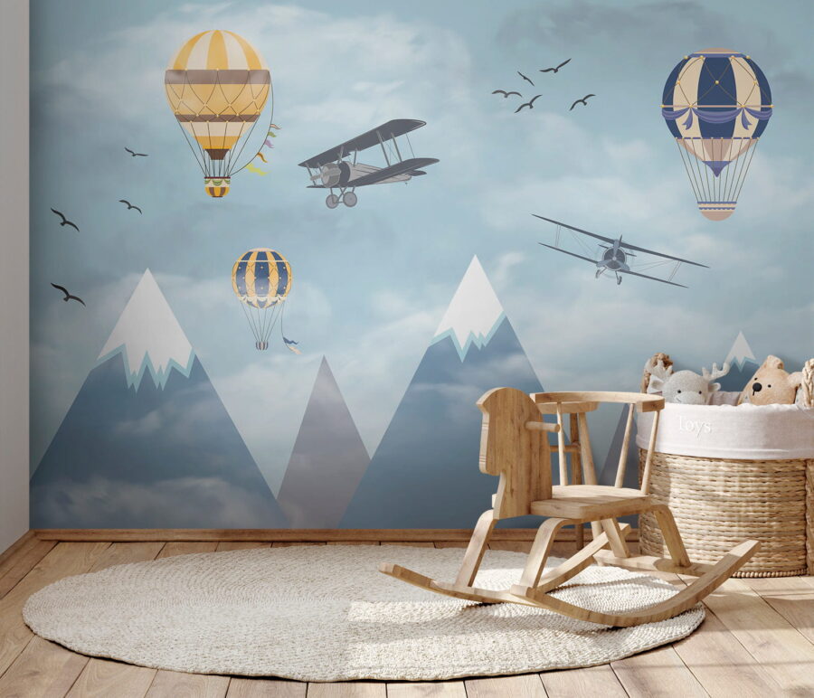 Imaginați-vă că vă treziți pe un cer plin de baloane cu aer cald capricioase care plutesc printre nori, alături de avioane aventuroase care trec pe lângă voi și păsări care zboară la înălțime – este magie pură! Pictura murală “Hot Air Balloon in the Sky” aduce un sentiment de uimire și aventură chiar în cameră. Perfectă pentru a stârni creativitatea și visele în spațiile copiilor, este ca și cum le-ai oferi o pânză pentru ca imaginația lor să zburde. Albastrul pastelat și norii moi sunt atât de liniștitoare, făcând ca spațiul să se simtă ușor și aerisit. Nu este vorba doar de decor – este o călătorie spre ceruri fără ca măcar să părăsiți camera. Părinții ar putea simți și ei un strop de nostalgie, amintindu-și de vise cu locuri îndepărtate și călătorii îndrăznețe. Cine nu și-ar dori un pic din asta în casa lor? În plus, acei munți acoperiți de zăpadă din fundal? Pur și simplu încântător. Această pictură murală este practic un vis cu ochii deschiși sub formă de artă murală – fermecătoare la infinit și frumos senină. Copiii o vor adora, la fel și copilul din tine.