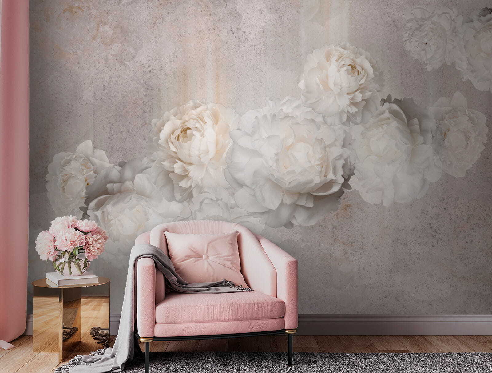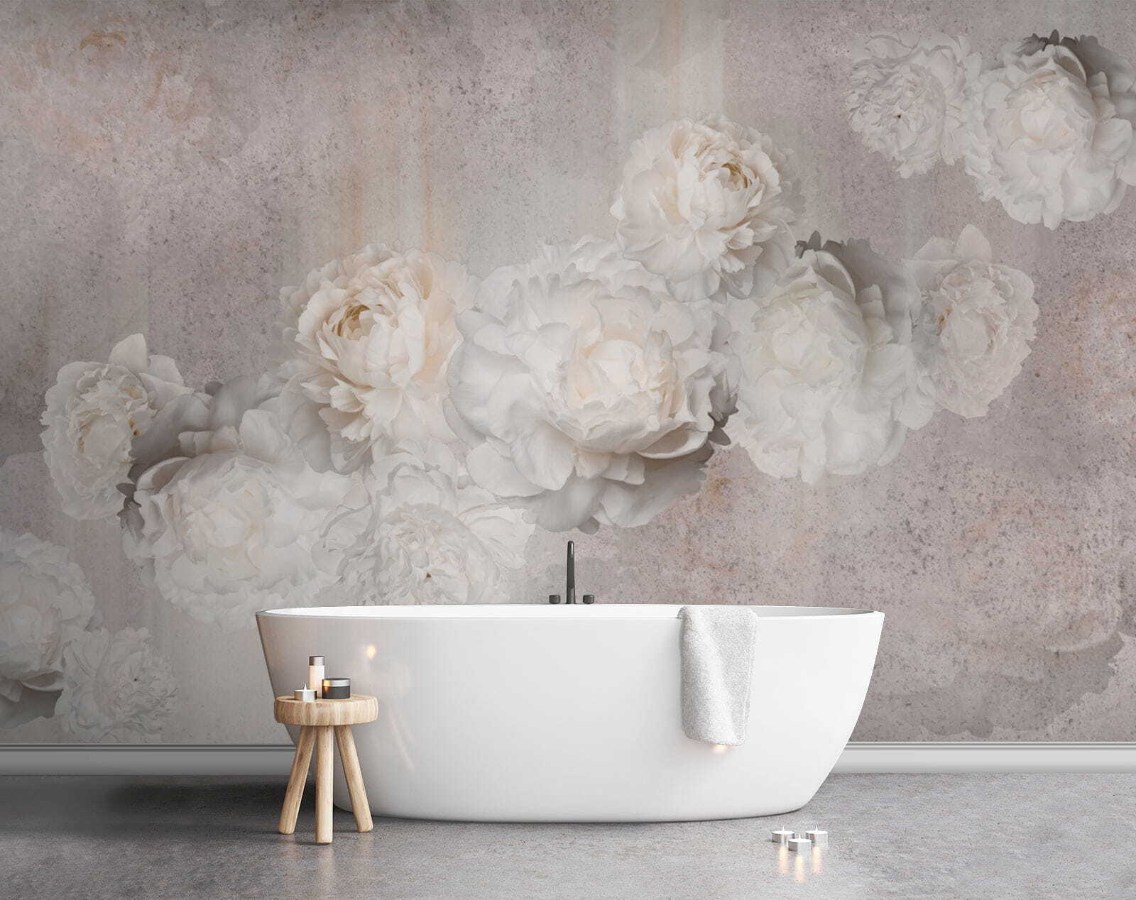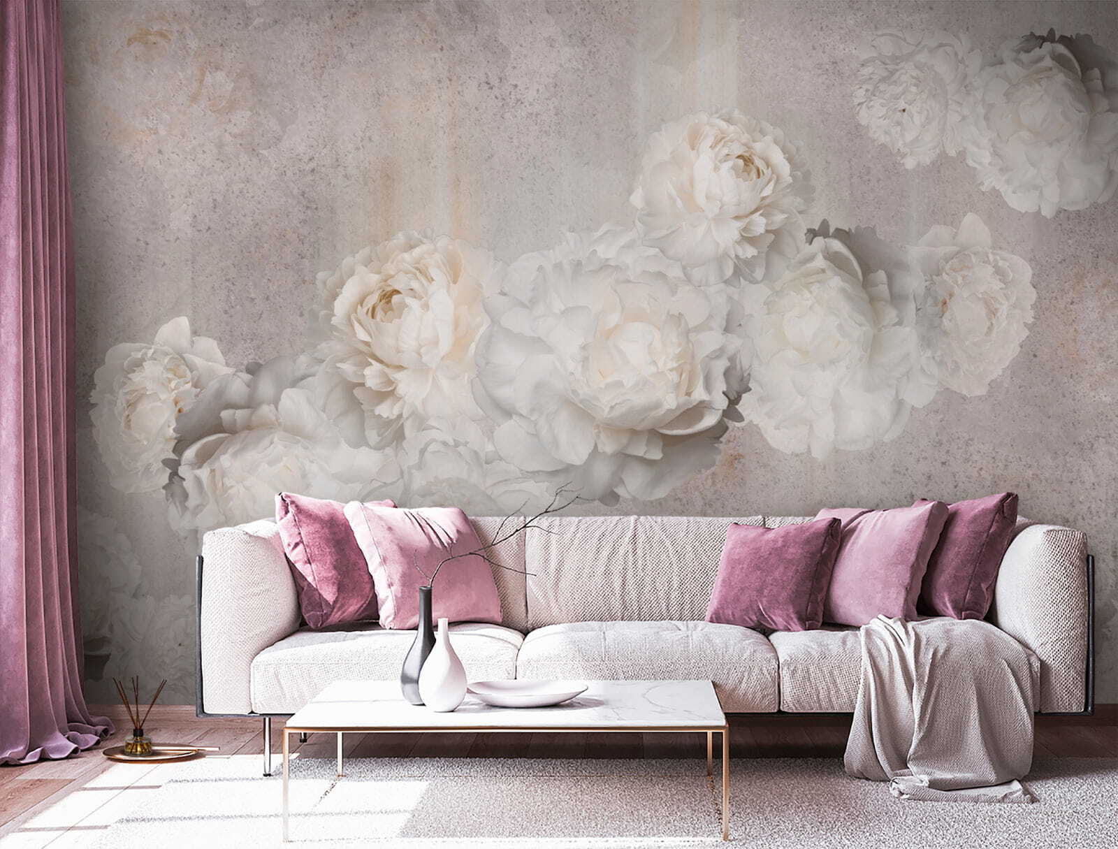 Fototapet Flori albe pe fundal texturat. (SKU: u61610)