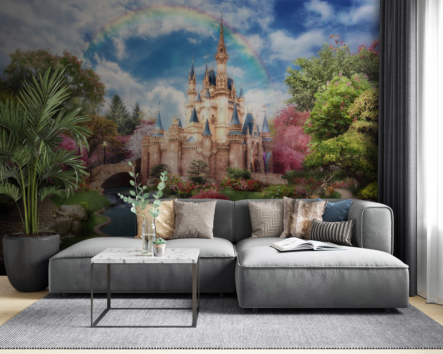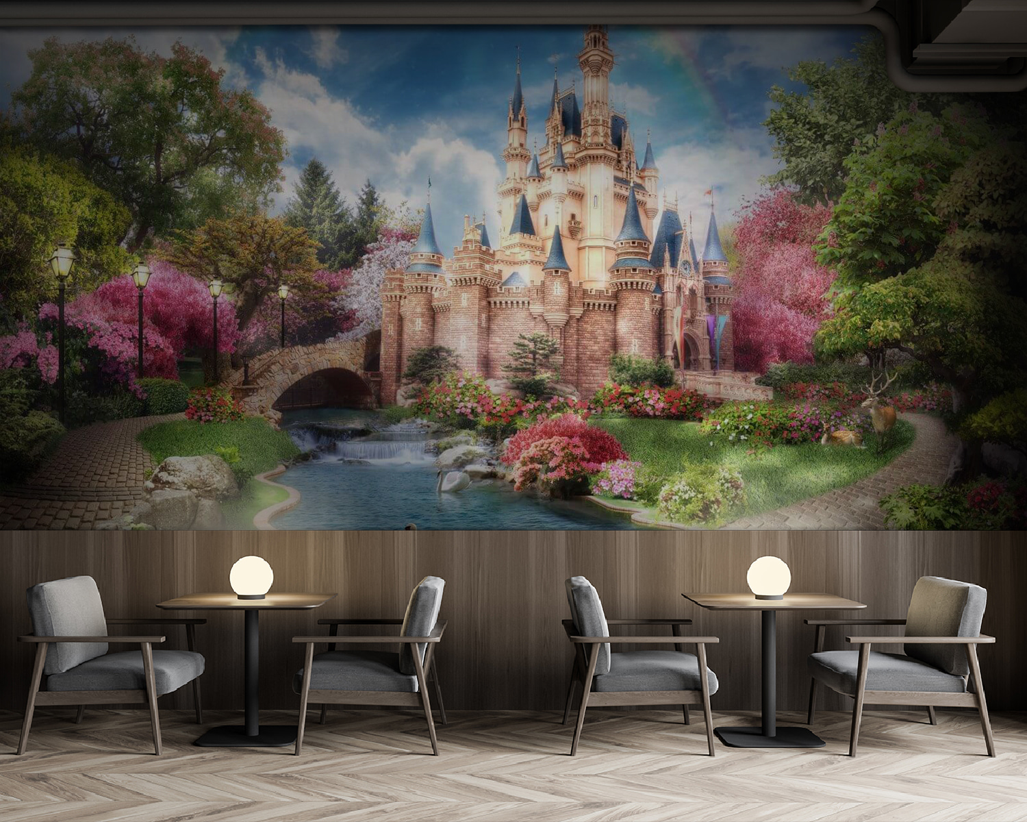 Imaginați-vă că pășiți într-un basm cu pictura murală “Castel cu un curcubeu pe cer”. Imaginați-vă un castel fermecător așezat printre copaci înfloriți, un iaz senin și, da, un curcubeu strălucitor care se întinde pe cer – dând oricărei camere un aer magic. Perfectă pentru camera unei fiice sau pentru paradisul oricărui copil, această pictură murală transformă pereții într-o evadare de vis, unde imaginația poate da frâu liber. Cine are nevoie de povești înainte de culcare când aventura este chiar acolo, pe perete? O cărare de grădină senină, lebede alunecând pe apă și castelul radiind încântare – este ca propria fereastră într-o lume a fanteziei. Imaginați-vă-i pe cei mici adormind visând la tărâmuri magice și misiuni epice.