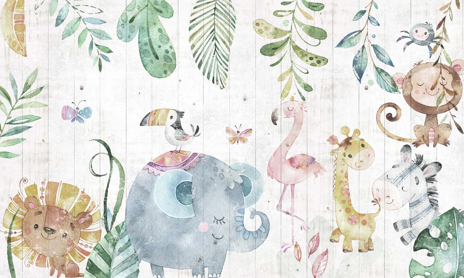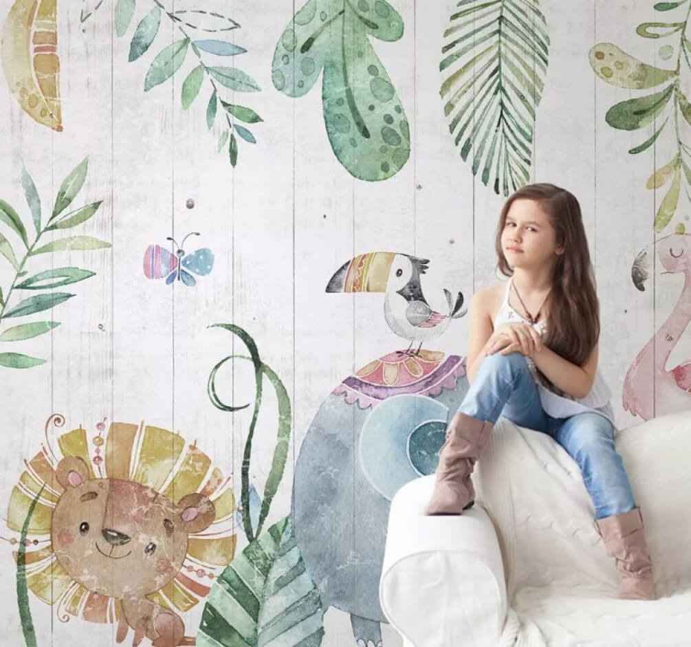 Transformați orice spațiu într-o junglă jucăușă cu această pictură murală încântătoare care prezintă animale adorabile în stiluri moi, de acuarelă. Imaginați-vă intrând într-o cameră plină de farmecul unei maimuțe răutăcioase, al unui elefant blând și al unui flamingo care pozează – este ca un mini safari chiar acasă! Perfectă pentru camerele copiilor sau zonele de joacă, această pictură murală aduce bucurie instantanee și un strop de fantezie. Imaginați-vă-i pe cei mici chicotind în timp ce își zăresc creaturile preferate. Culorile liniștitoare sunt ușoare pentru ochi, creând un fundal senin pentru aventuri atât imaginare, cât și reale. Este mai mult decât un decor; este un loc fericit pentru a visa!