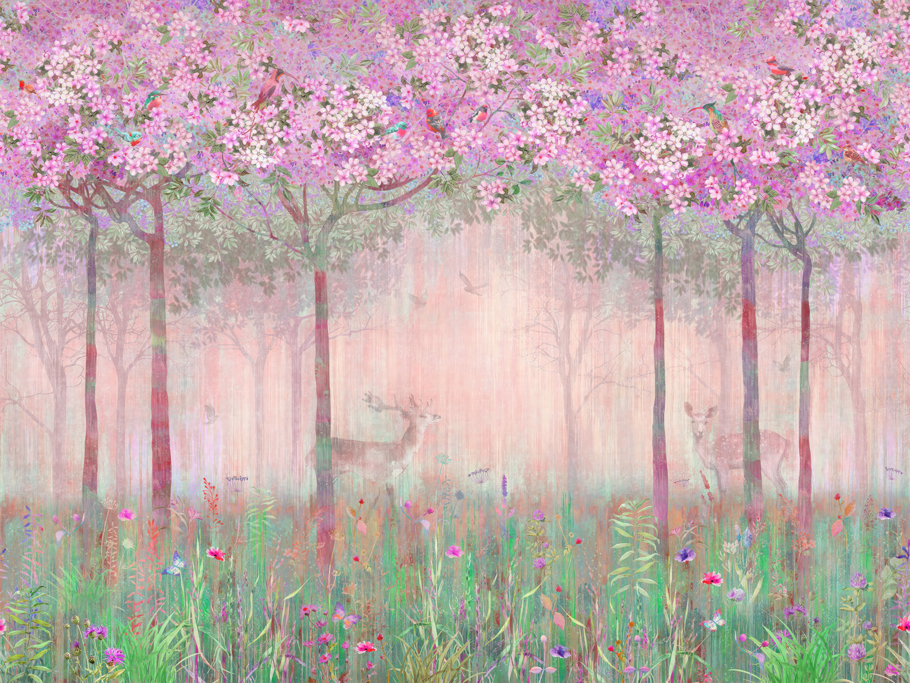 Bună ziua! Priviți această pictură murală de vis – este ca și cum ați păși direct într-o pădure magică! Numită pe bună dreptate “Pictură de flori și iarbă”, scena surprinde o pajiște colorată, plină de flori înflorite, iarbă luxuriantă și un baldachin de flori roz. Imaginați-vă acest lucru în camera unui copil, transformând ora de culcare într-o aventură printr-un peisaj fermecat.