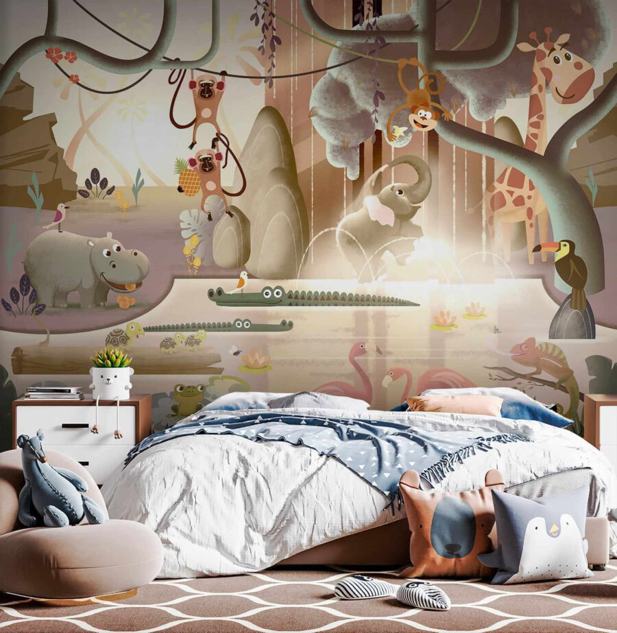 Imaginează-ți copilul trezindu-se în fiecare dimineață la această paradă de animale fericite. Culorile vesele și fețele prietenoase ar putea transforma chiar și cele mai somnoroase dimineți într-un început distractiv al zilei! Și sincer, cine nu și-ar dori să fie întâmpinat de un hipopotam prietenos care afișează un zâmbet mare și caraghios?