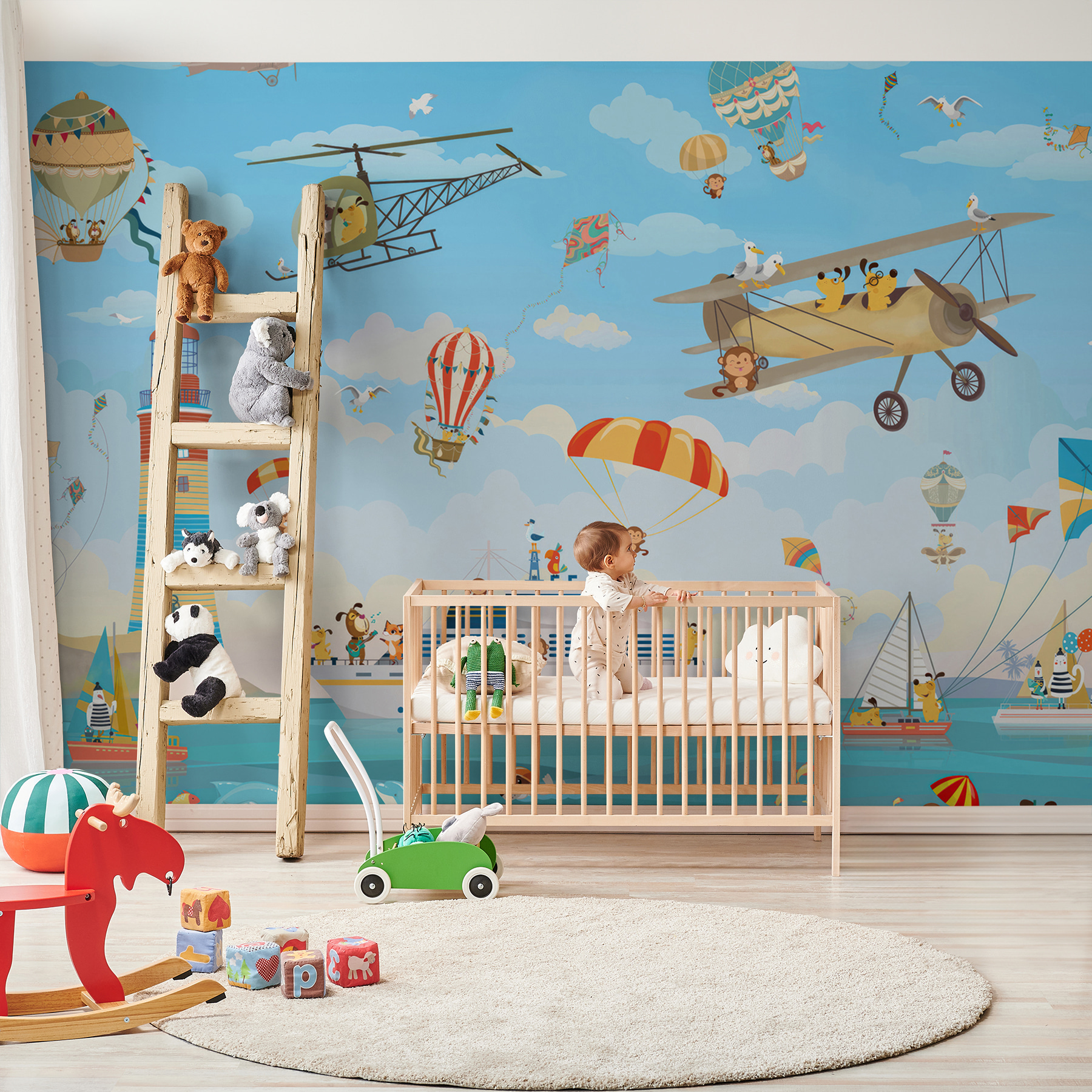 Ați simțit vreodată nevoia să adăugați un strop de aventură în camera copilului dumneavoastră? Această pictură murală “Maimuță ținând o parașută” este perfectă! Face parte din colecția de picturi murale pentru copii și este plină de farmec capricios. Imaginați-vă acest lucru: maimuțe obraznice, parașute în zbor și o avalanșă de activități distractive – este ca o mini aventură pe pereții lor! Perfect pentru micul tău explorator, acesta stârnește imaginația și înseninează spațiul. Fiecare privire ar putea aduce un zâmbet sau un chicotit – este o carte de povești încântătoare, vizuală, care este întotdeauna deschisă. Ideală pentru a dezlănțui energia și creativitatea tinerilor!