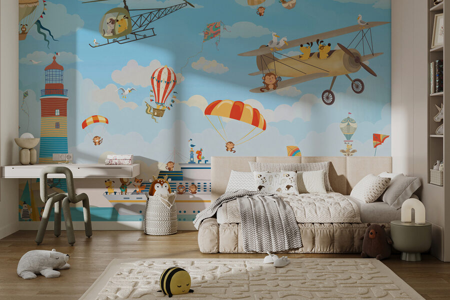 Ați simțit vreodată nevoia să adăugați un strop de aventură în camera copilului dumneavoastră? Această pictură murală “Maimuță ținând o parașută” este perfectă! Face parte din colecția de picturi murale pentru copii și este plină de farmec capricios. Imaginați-vă acest lucru: maimuțe obraznice, parașute în zbor și o avalanșă de activități distractive – este ca o mini aventură pe pereții lor! Perfect pentru micul tău explorator, acesta stârnește imaginația și înseninează spațiul. Fiecare privire ar putea aduce un zâmbet sau un chicotit – este o carte de povești încântătoare, vizuală, care este întotdeauna deschisă. Ideală pentru a dezlănțui energia și creativitatea tinerilor!