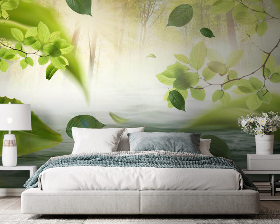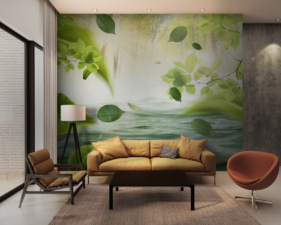 Transformați orice spațiu într-o evadare răcoritoare cu această pictură murală “Apă cu frunze”. Imaginați-vă că pășiți într-o pădure senină, unde frunzele dansează ușor deasupra unui pârâu strălucitor. Este ca și cum ai aduce o bucată de natură chiar în casa ta. Imaginați-vă dimineți confortabile cu lumina soarelui pătrunzând în casă sau acea atmosferă perfectă de seară, când lumea de afară se liniștește. Verdele blând și apa liniștitoare creează o atmosferă pașnică – ideală pentru relaxare după o zi lungă. Nu este doar decor; se simte ca o îmbrățișare caldă din partea naturii. Perfectă pentru sufragerie, dormitor sau chiar un colțișor de lectură confortabil. Cine nu și-ar dori asta?