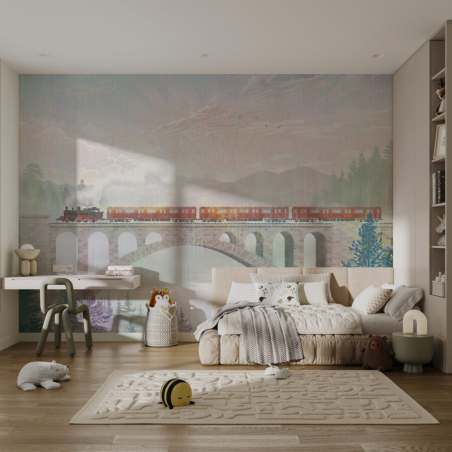Imaginați-vă acest lucru: pășind într-o cameră cu această pictură murală, “Pod peste un râu”, vă simțiți ca și cum ați fi transportați într-o scenă desprinsă direct dintr-o carte poștală de călătorie de demult. Imaginați-vă o după-amiază confortabilă, sorbind ceai, cu această scenă care face pereții să fredoneze practic de nostalgie. Podul fermecător și trenul care se mișcă creează o atmosferă senină, aproape ca într-o carte de povești – perfectă pentru cei care tânjesc după un strop de aventură în confortul de acasă. Nu este doar o pictură murală; este o invitație la visare cu ochii deschiși. Culorile pastelate moi și pinii cețoși adaugă un fundal liniștitor, dând senzația că aproape poți auzi ciripitul păsărilor și simți mirosul de rouă proaspătă de dimineață. Fie că sunteți un pasionat înrăit de decor sau doar o persoană care apreciază micile momente magice, această pictură murală aduce un aer de farmec atemporal de călătorie chiar în spațiul dvs. Porniți melodiile preferate, priviți această pictură murală și lăsați-o să vă ducă pe acel pod liniștit în fiecare zi.