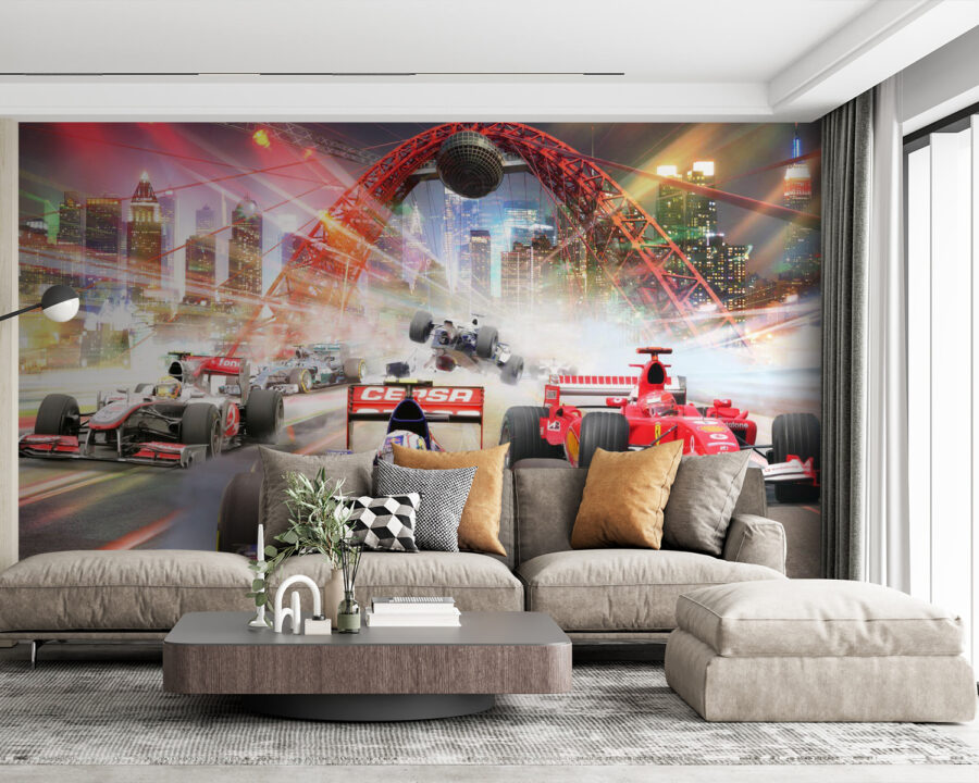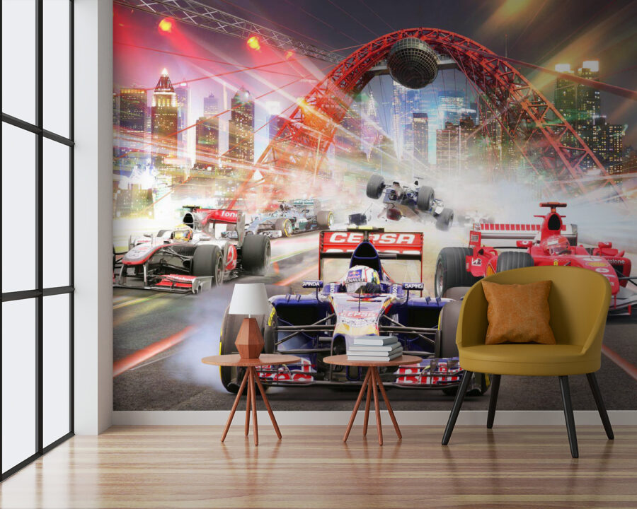 Cât de tare este această pictură murală? Gândiți-vă să vă condimentați spațiul cu o cursă epică de mare viteză chiar prin oraș. Imaginează-ți emoția mașinilor de Formula 1 care trec pe lângă tine, aproape că ai senzația că faci parte din acțiune. Perfect pentru camera fiului tău, este ca și cum ai aduce un pic de atmosferă de circuit. Este plin de culori vibrante și tone de mișcare, ceea ce este grozav pentru că este atât de dinamic încât aproape că poți auzi cum trosnesc motoarele. Copilul tău sau chiar orice pasionat de mașini din viața ta ar adora asta. Nu este doar pentru spectacol – aduce un pic de adrenalină în viața de zi cu zi. Ideal pentru a face ca orice spațiu să fie plin de emoție!