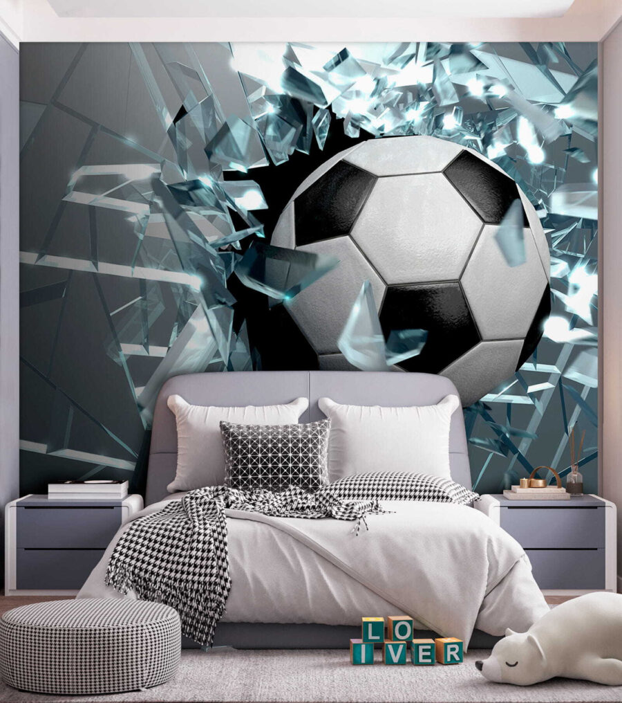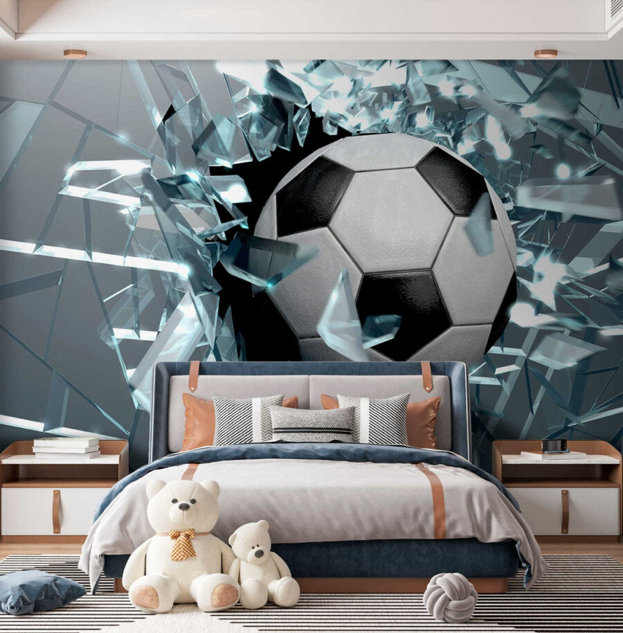 Transformând o cameră într-o aventură vibrantă, această pictură murală aduce energia palpitantă a fotbalului direct pe peretele dvs. Imaginați-vă o minge de fotbal puternică care izbucnește printr-o barieră imaginară, cioburile de sticlă stârnind o vibrație plină de viață. Este ca și cum spațiul tău tocmai a marcat golul suprem, ceea ce îl face perfect pentru copiii care visează să devină superstaruri pe teren. Imaginează-ți – prietenii vin, ochii se măresc și întrebările zboară. Ce copil nu s-ar simți ca un campion cu această scenă dinamică? Este mai mult decât un simplu decor; este inspirație, emoție și multă distracție!