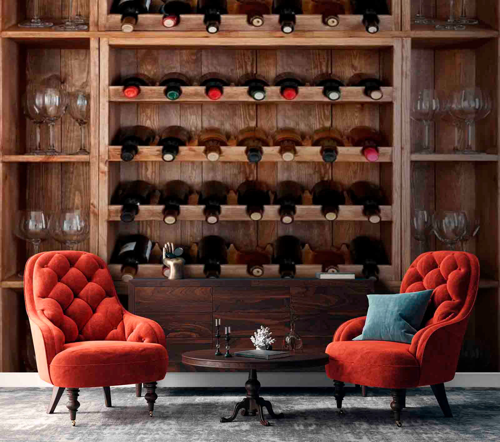 Transformați-vă spațiul cu această pictură murală fermecătoare cu sticle de vin și pahare aliniate grațios pe rafturi rustice din lemn. Este ca și cum ai intra în fiecare zi într-o cramă confortabilă, unde atmosfera este caldă și primitoare. Imaginați-vă că găzduiți prieteni pentru o cină simplă, iar acest mural fură spectacolul. Tonurile pământii aduc o atmosferă relaxată, perfectă pentru a sorbi și a sta de vorbă. Ea stârnește conversații despre vinurile preferate și despre acea călătorie de neuitat la o podgorie. Acesta nu este doar un decor de perete; este o experiență, adăugând o notă de farmec vintage și un strop de bucurie oricărei încăperi. Sănătate pentru o actualizare elegantă!
