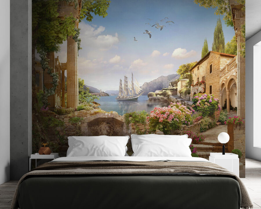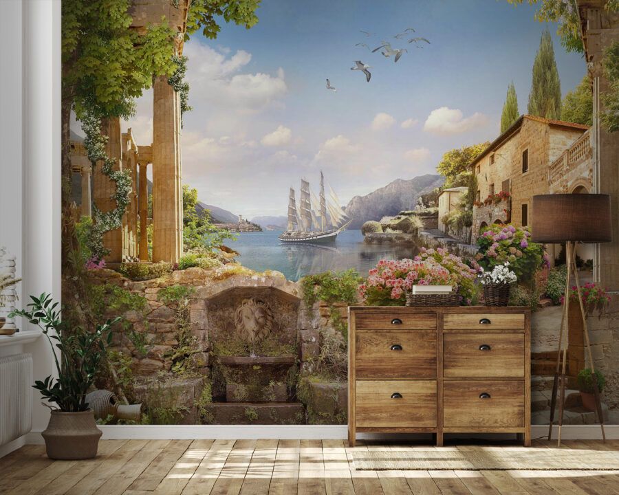 Pășiți într-o evadare de vis cu această pictură murală uimitoare, care prezintă o clădire din piatră situată lângă ape senine. Imaginați-vă: zile însorite și brize blânde în timp ce o barcă grațioasă alunecă, în timp ce flori colorate se revarsă peste marginile pietrei îmbătrânite. Vibe-ul? Tranquilitate pură. Această pictură murală aduce o parte din natură în interior, făcând ca orice cameră să se simtă ca o escapadă confortabilă. Prietenii ar putea chiar să vă întrebe dacă v-ați transformat spațiul într-o escapadă fermecătoare pe malul mării! Este perfect pentru a stârni acele sentimente de hoinăreală, toate în timp ce vă simțiți confortabil acasă. Transformați-vă pereții și lăsați aventura să înceapă!
