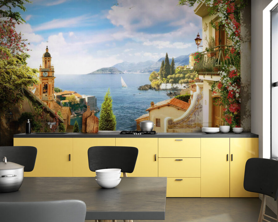 Imaginați-vă că pășiți într-un sat mediteranean liniștit de fiecare dată când intrați în camera dvs. – acest “Fototapet Pot with pink flowers” face exact asta! Este ca o mini-vacanță pe peretele tău. Florile roz vibrante cad în cascadă peste pereții de piatră superbi, având în fundal o priveliște uimitoare a unui peisaj marin însorit. Perfectă pentru a adăuga o notă de seninătate oricărui spațiu, aproape că ai impresia că poți auzi clopotul îndepărtat al bisericii sunând și valurile blânde lovindu-se de țărm. Fie că sunteți un fan al decorului contemporan sau doar iubiți piesele unice, această pictură murală va transforma orice perete simplu într-un paradis pitoresc. Și să fim sinceri, cine nu și-ar dori o bucată din acest peisaj de vis în casa sa? În plus, este un bun subiect de conversație – prietenii tăi te vor întreba cu siguranță unde ai găsit o piesă atât de uimitoare!